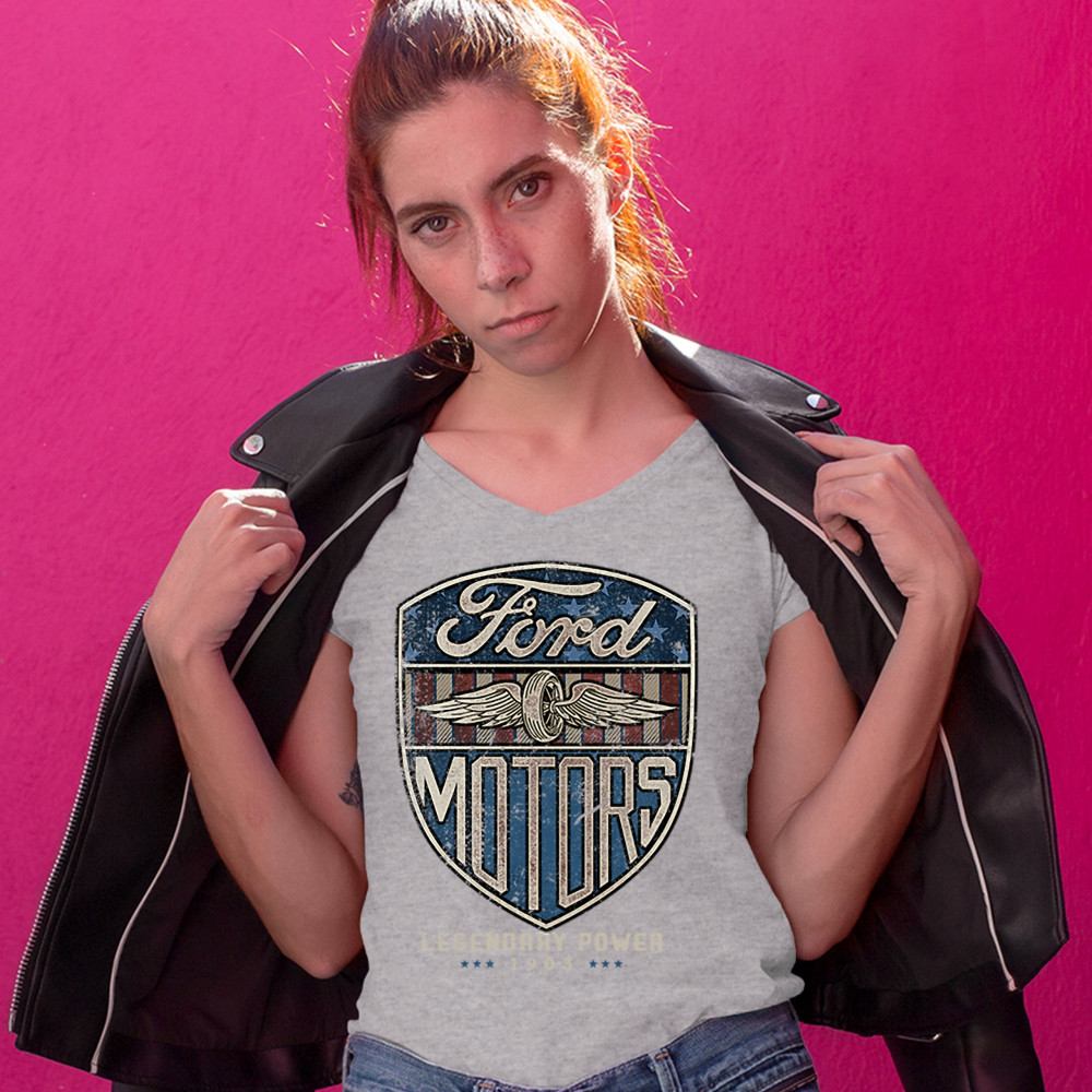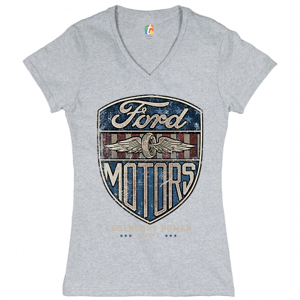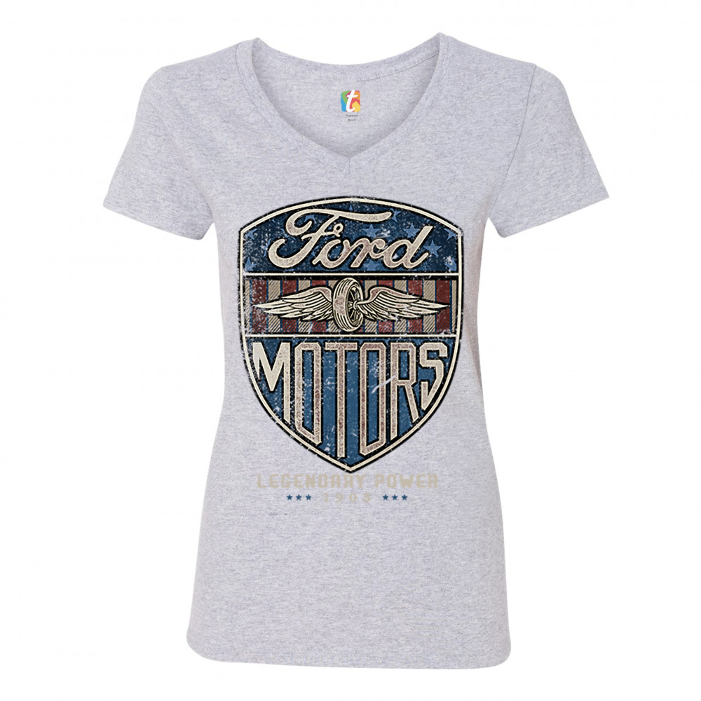 FORD MOTORS LEGENDARY POWER women's v-neck t-shirt retro fomoco licensed tee gray