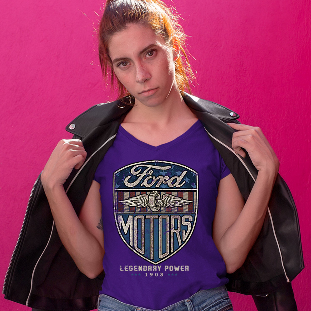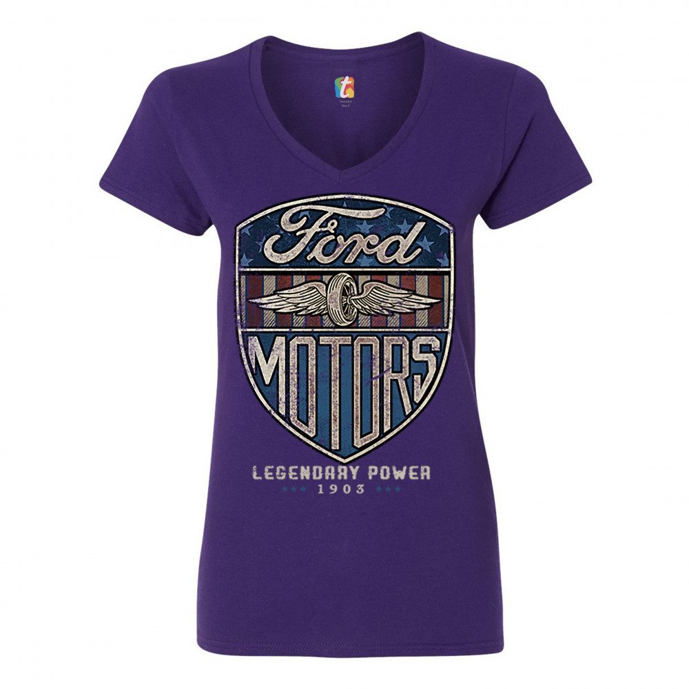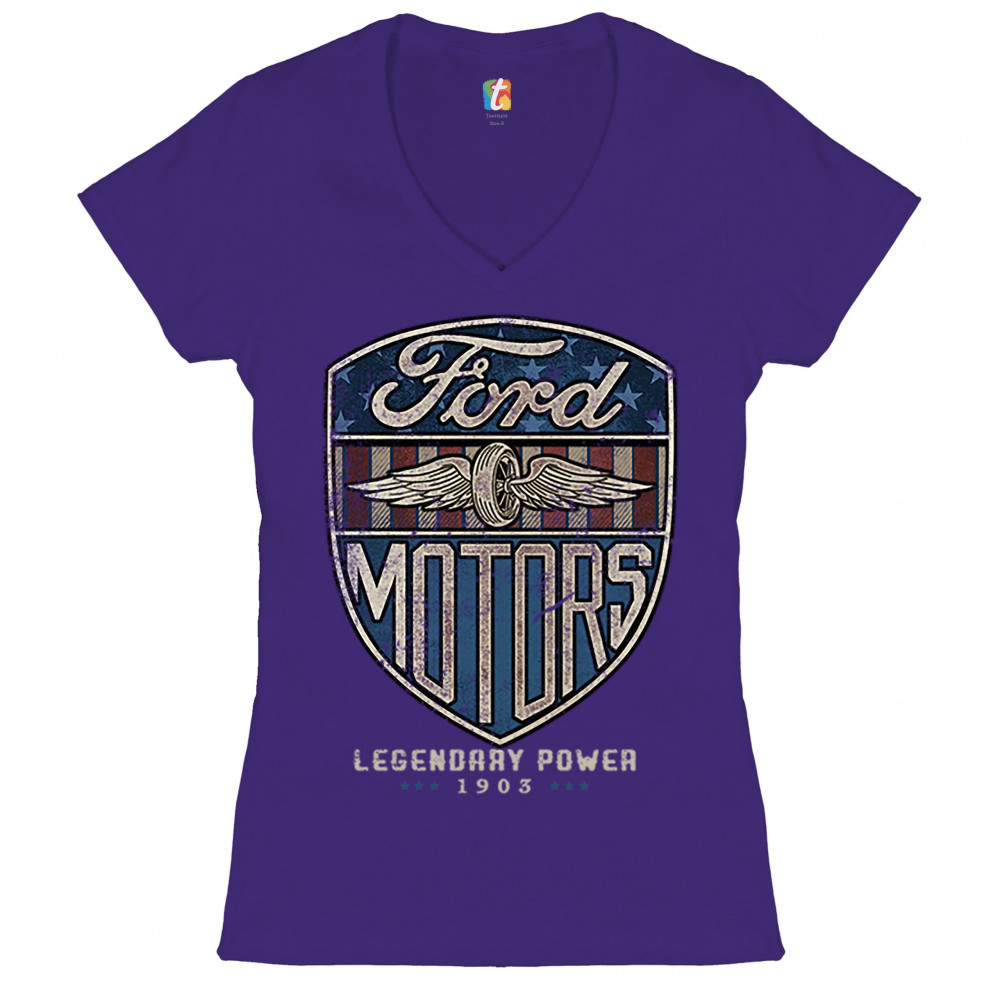 FORD MOTORS LEGENDARY POWER women's v-neck t-shirt retro fomoco licensed tee purple