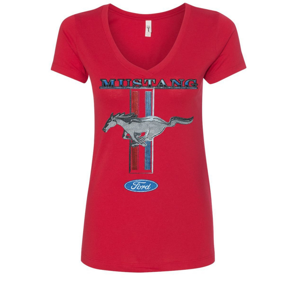 FORD MUSTANG CLASSIC women's v-neck t-shirt gt cobra boss 302 mach 1 red