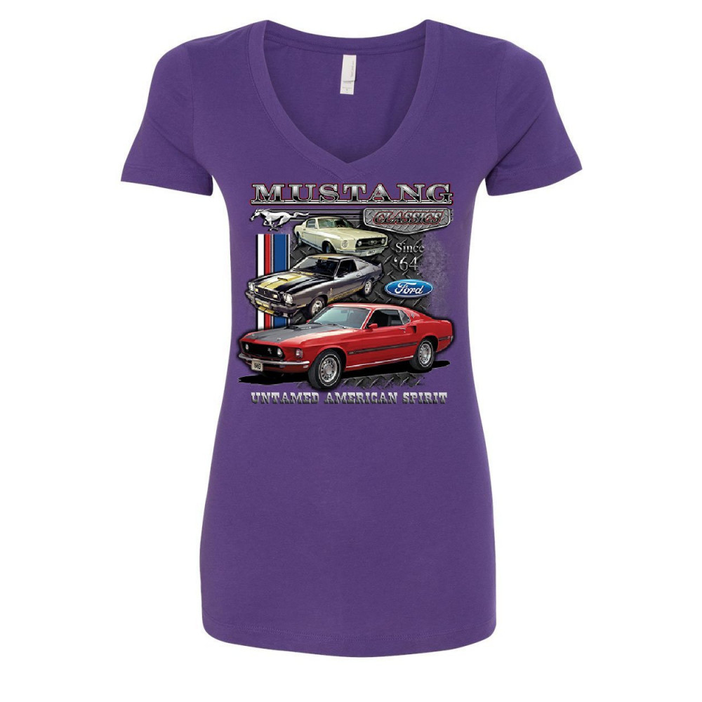 FORD MUSTANG CLASSICS women's v-neck t-shirt muscle car untamed american spirit purple