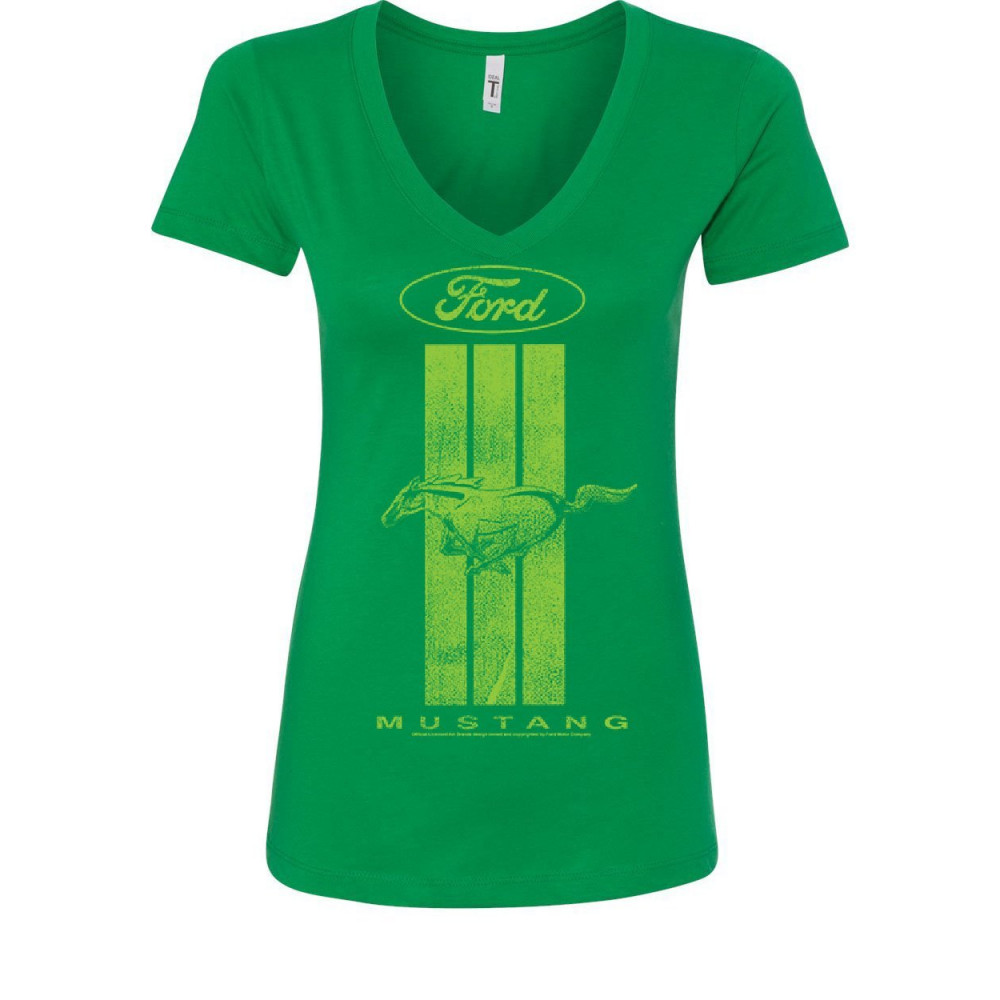 FORD MUSTANG GREEN STRIPE women's v-neck t-shirt classic american muscle car green