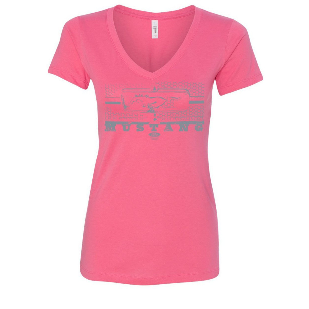FORD MUSTANG HONEYCOMB GRILLE women's v-neck t-shirt legendary american muscle pink