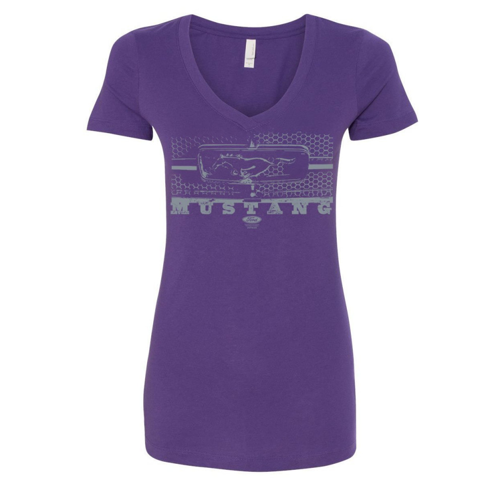 FORD MUSTANG HONEYCOMB GRILLE women's v-neck t-shirt legendary american muscle purple