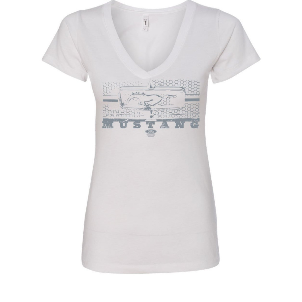 FORD MUSTANG HONEYCOMB GRILLE women's v-neck t-shirt legendary american muscle white