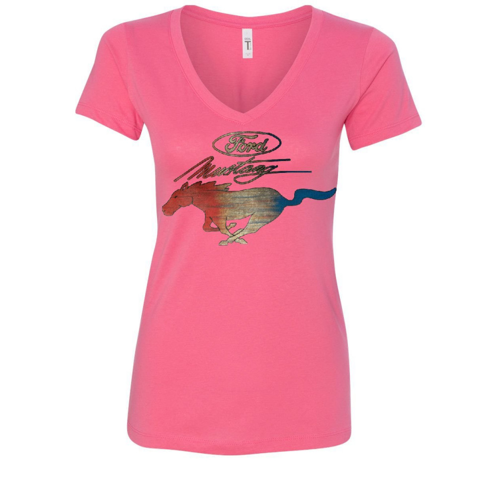 FORD MUSTANG LOGO women's v-neck t-shirt gt shelby cobra boss 302 pink