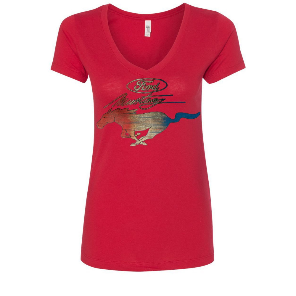 FORD MUSTANG LOGO women's v-neck t-shirt gt shelby cobra boss 302 red