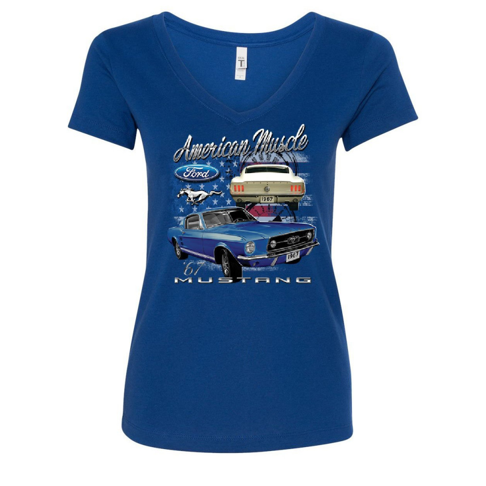 FORD MUSTANG SHELBY 1967 GT women's v-neck t-shirt american made muscle cars royal blue