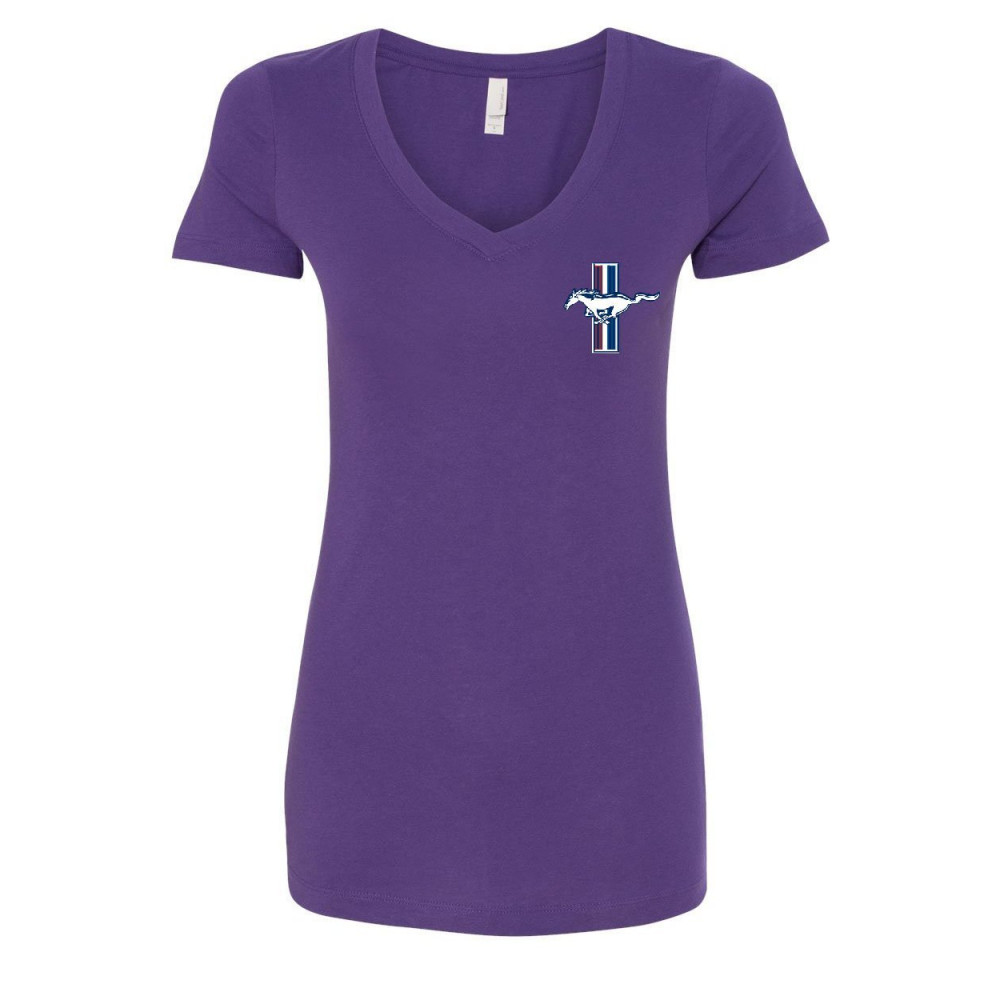 FORD MUSTAND THE LEGEND LIVES LOGO women's v-neck t-shirt classic muscle cars purple