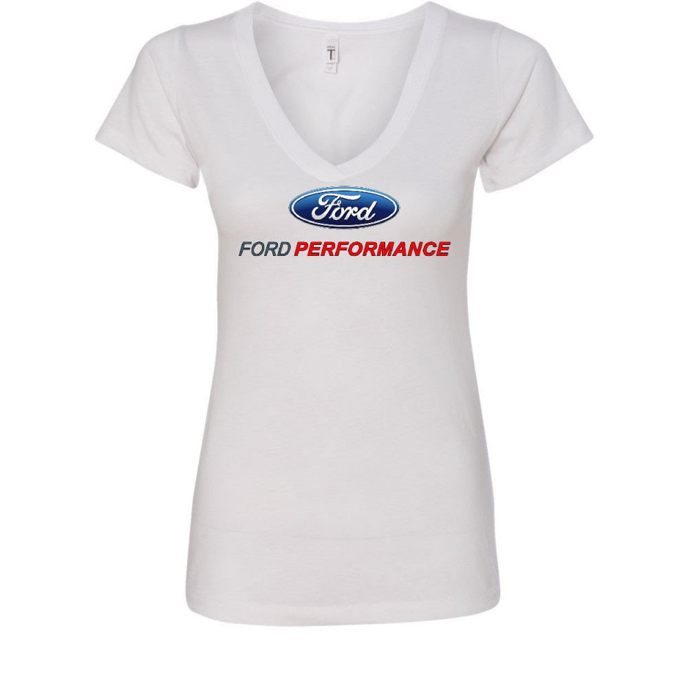 FORD PERFORMANCE v-neck t-shirt ford mustang gt st racing white