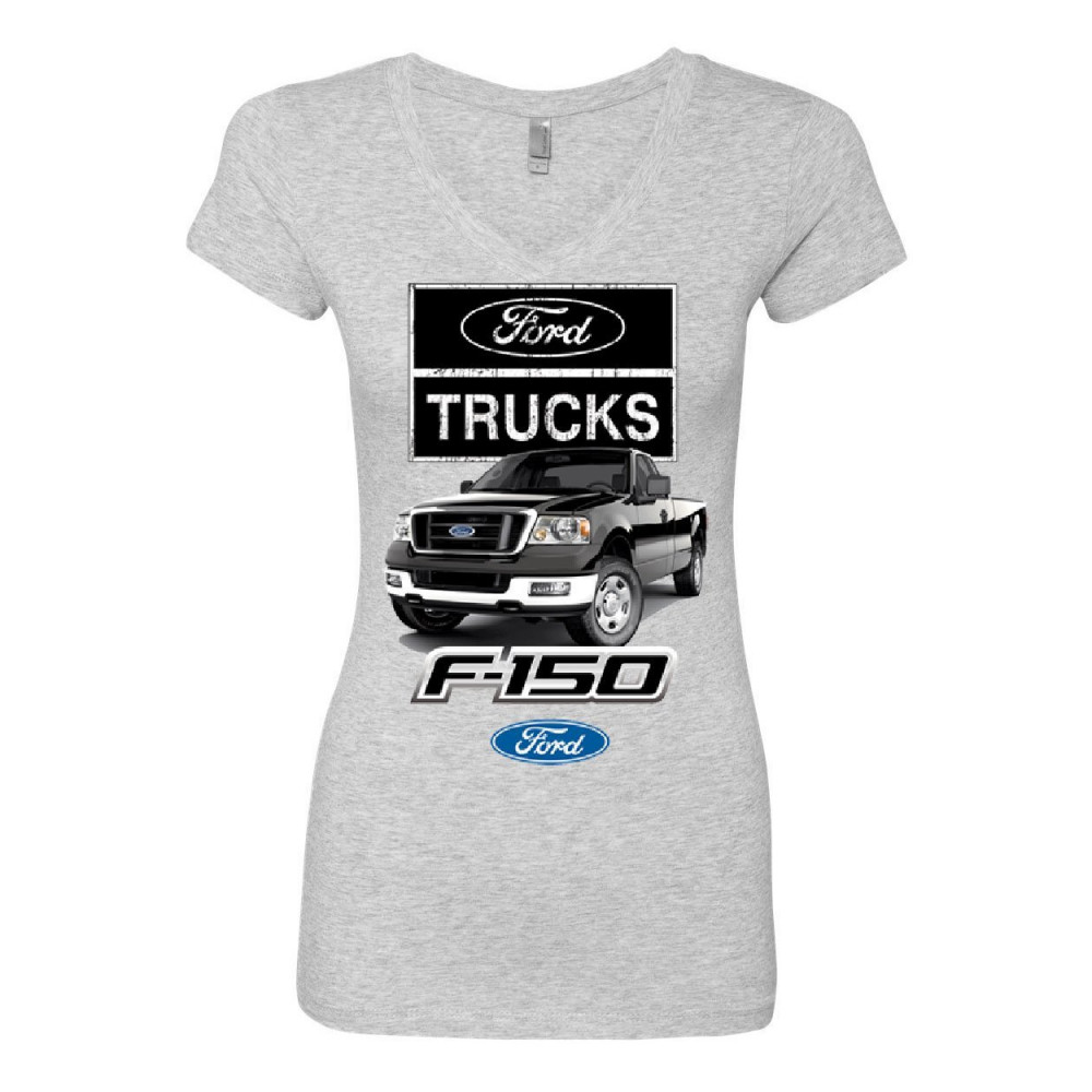 FORD PICKUP TRUCKS F-150 women's v-neck t-shirt offroad country built tough 4x4 gray