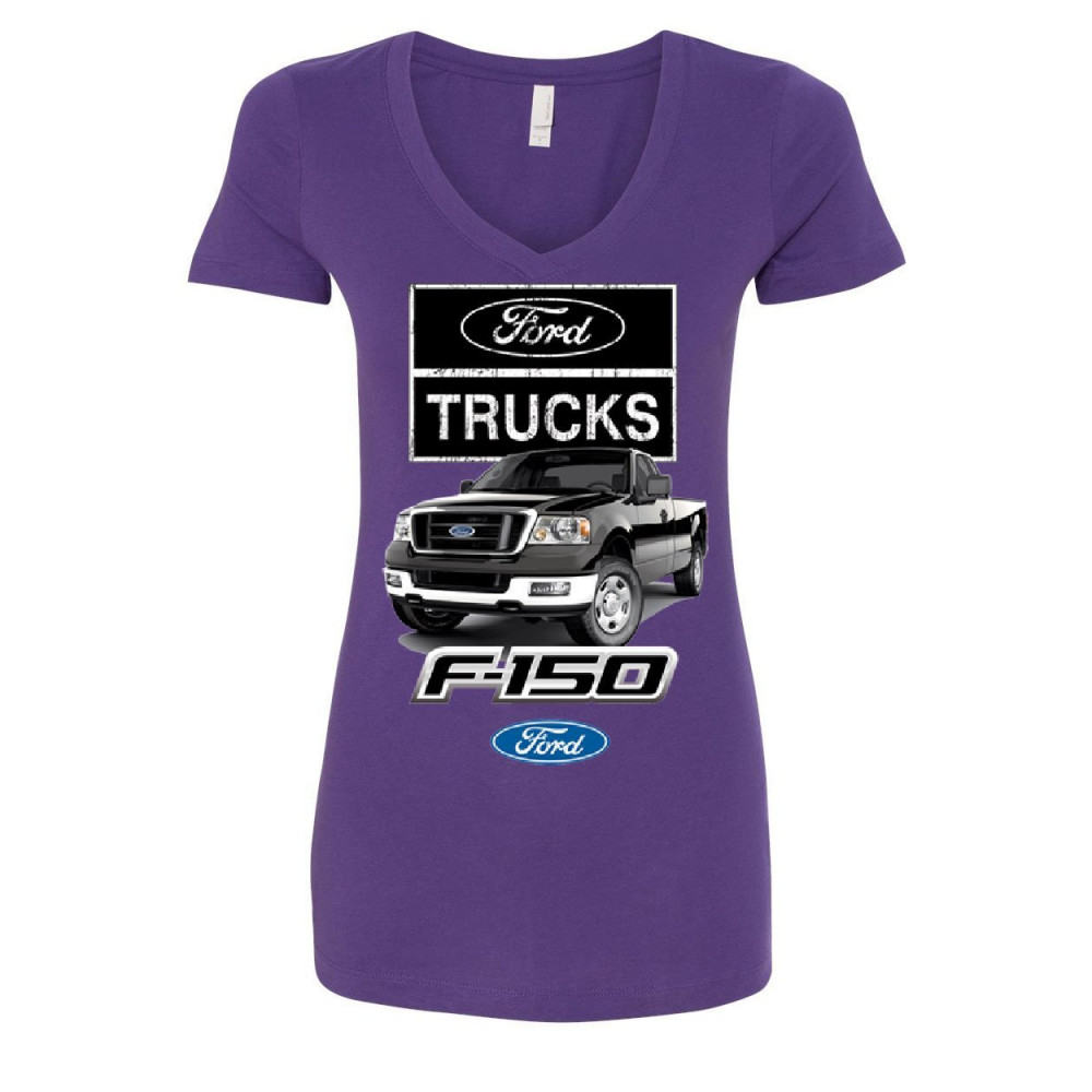 FORD PICKUP TRUCKS F-150 women's v-neck t-shirt offroad country built tough 4x4 purple