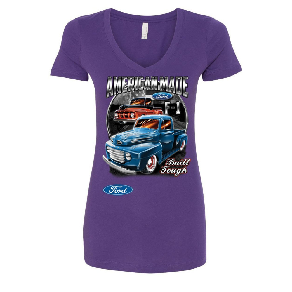 FORD PICKUP TRUCKS F1 women's v-neck t-shirt american made hot rod built tough purple