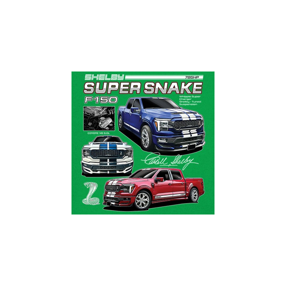 Ford Shelby Super Snake F-150 design featuring 785HP supercharged V8, Shelby pickup heritage, Shelby American truck power, and off-road muscle.