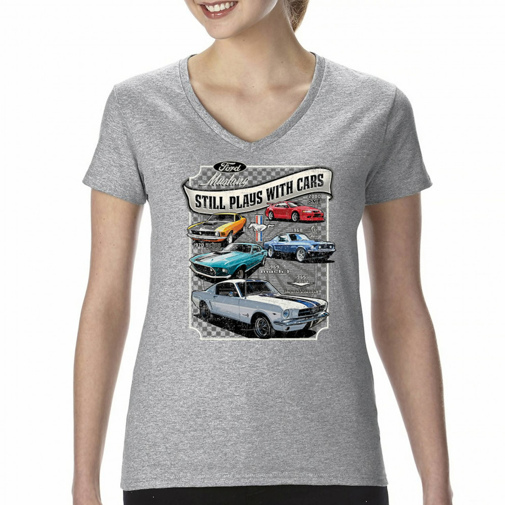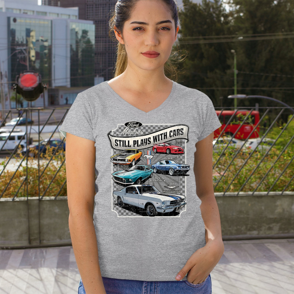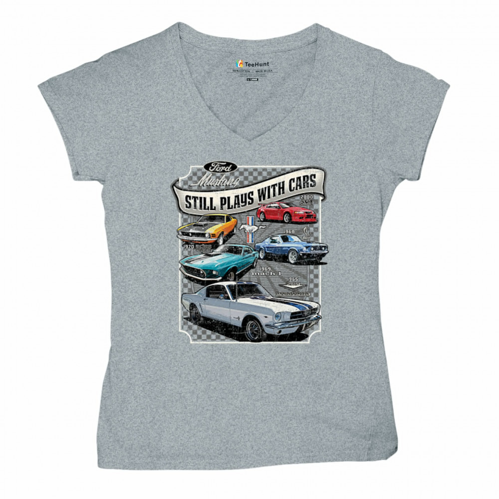 This bold Ford Mustang "Still Plays With Cars" design showcases six classic models from 1965 to 2000, including the 1969 Mach 1, 1970 Boss 302, and 2000 SVT. A dream graphic for muscle car lovers, collectors, and pony car fans. Great for classic auto shows, retro cruises, garage wear, or car clubs.