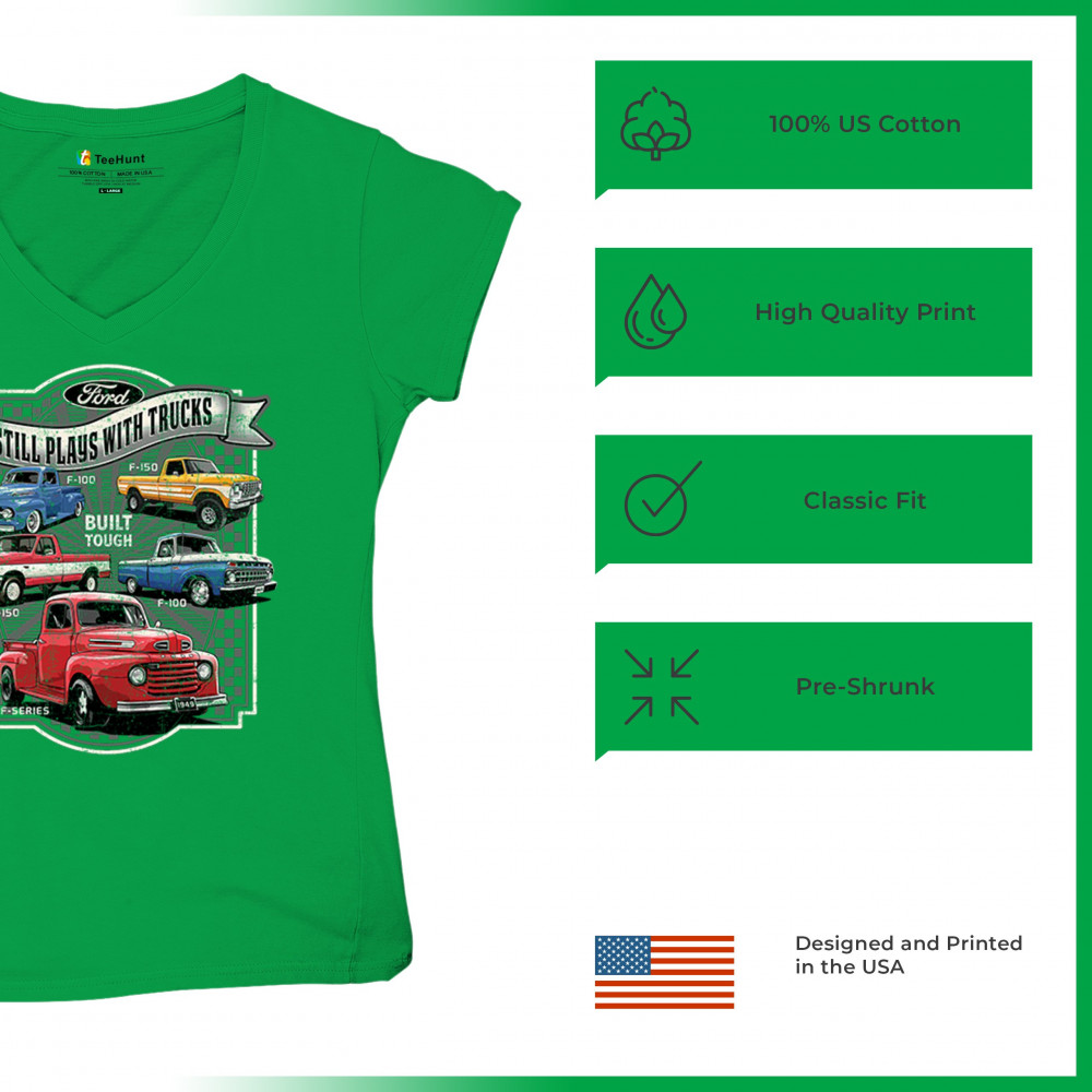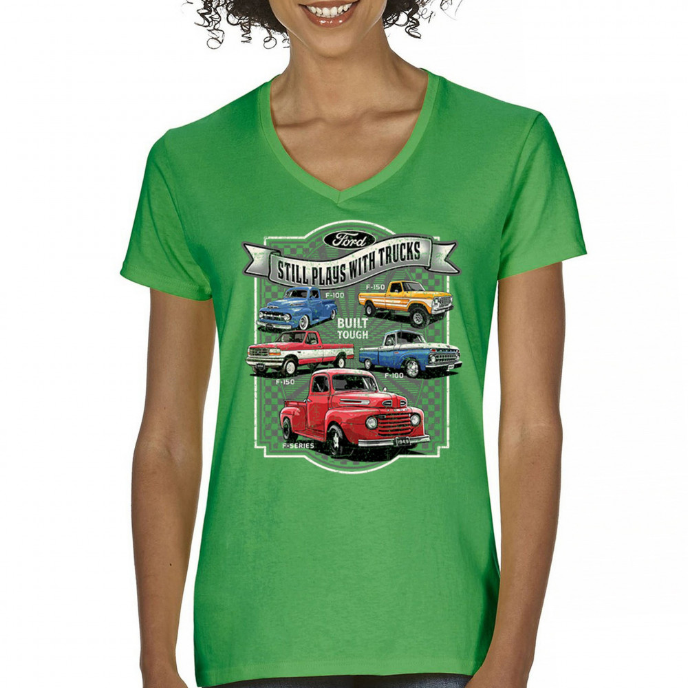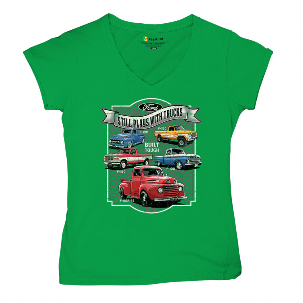 Features classic Ford F-Series trucks from 1949 to F-150. Great for vintage truck fans, garage wear, car shows, and collectors who love pickups.