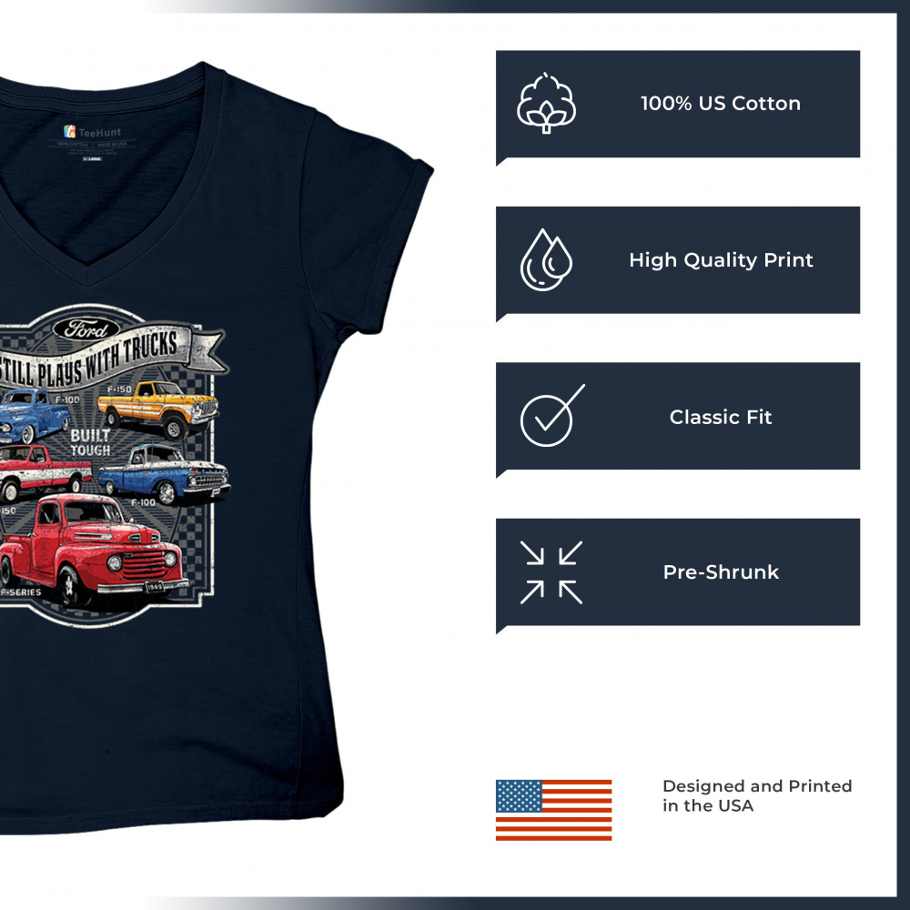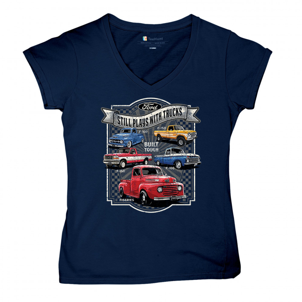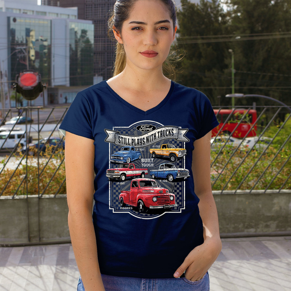 Features classic Ford F-Series trucks from 1949 to F-150. Great for vintage truck fans, garage wear, car shows, and collectors who love pickups.