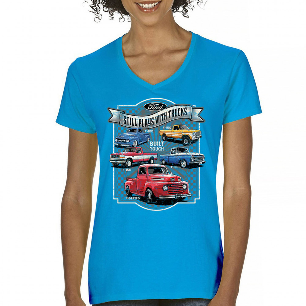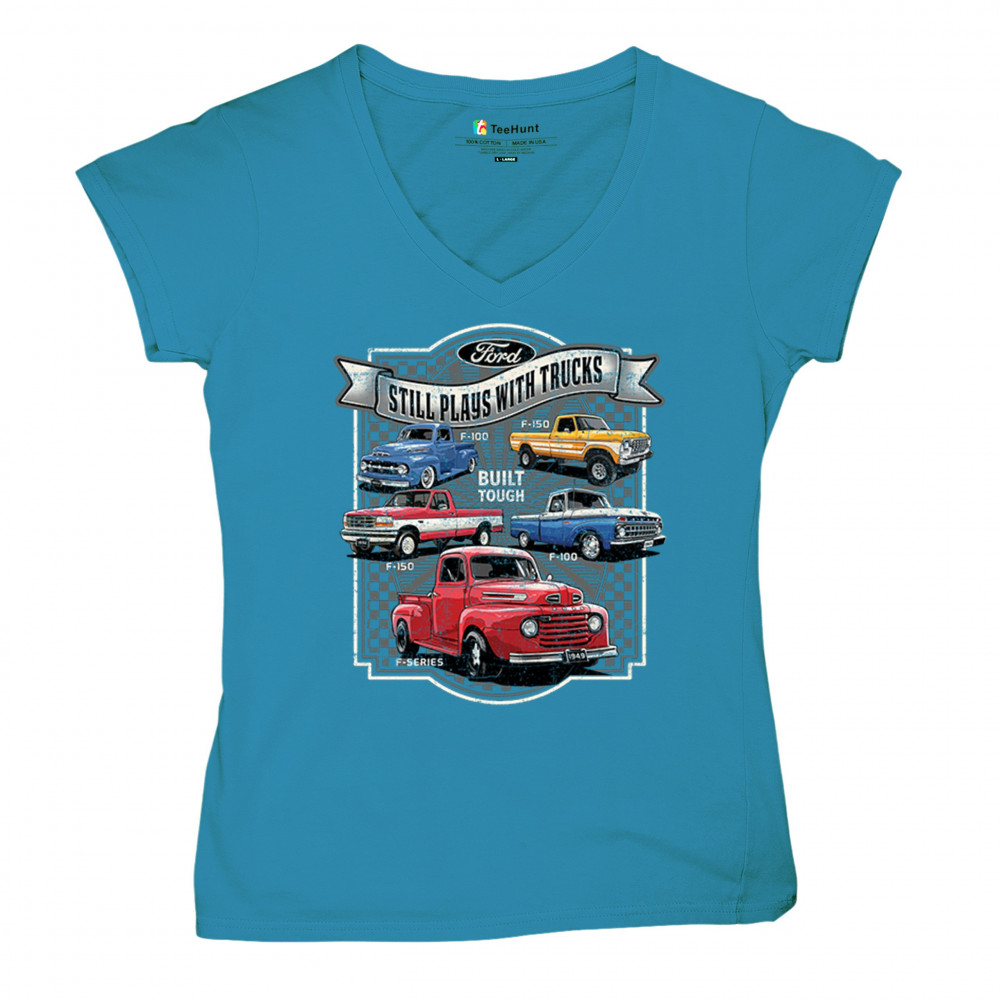 Features classic Ford F-Series trucks from 1949 to F-150. Great for vintage truck fans, garage wear, car shows, and collectors who love pickups.