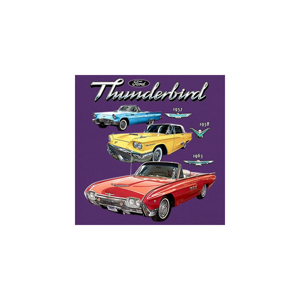 Iconic Ford Thunderbird design with 1957, 1958, and 1963 models. A vintage tribute for car collectors and American muscle fans.