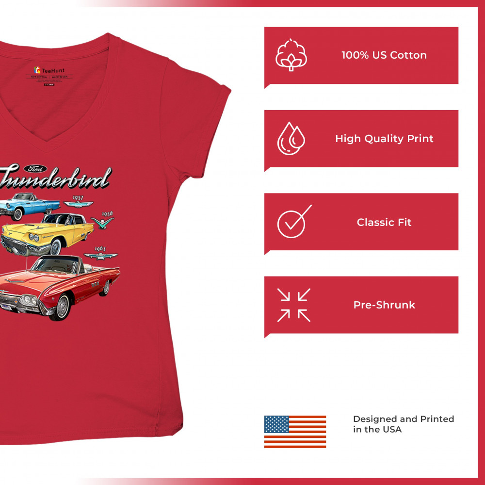 Iconic Ford Thunderbird design with 1957, 1958, and 1963 models. A vintage tribute for car collectors and American muscle fans.