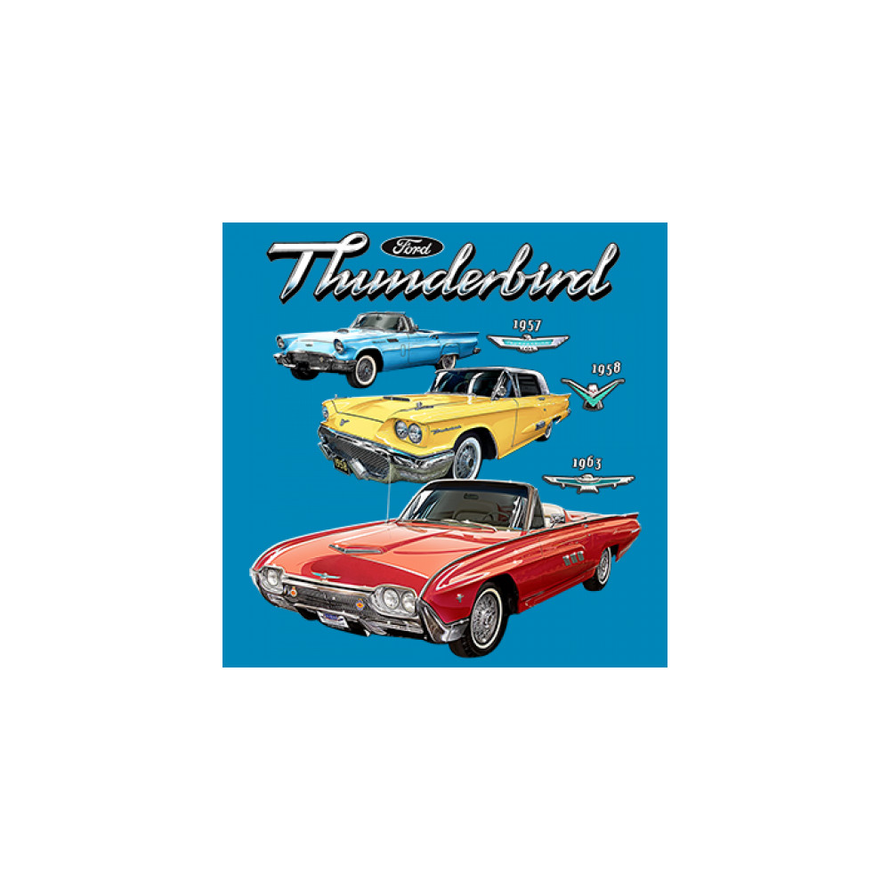 Iconic Ford Thunderbird design with 1957, 1958, and 1963 models. A vintage tribute for car collectors and American muscle fans.