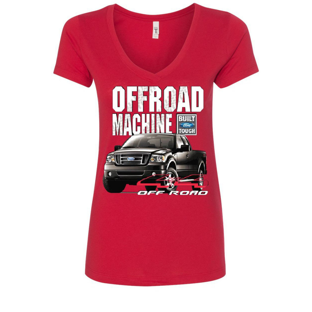 LICENSED FORD F-150 v-neck t-shirt offroad machine built ford tough red