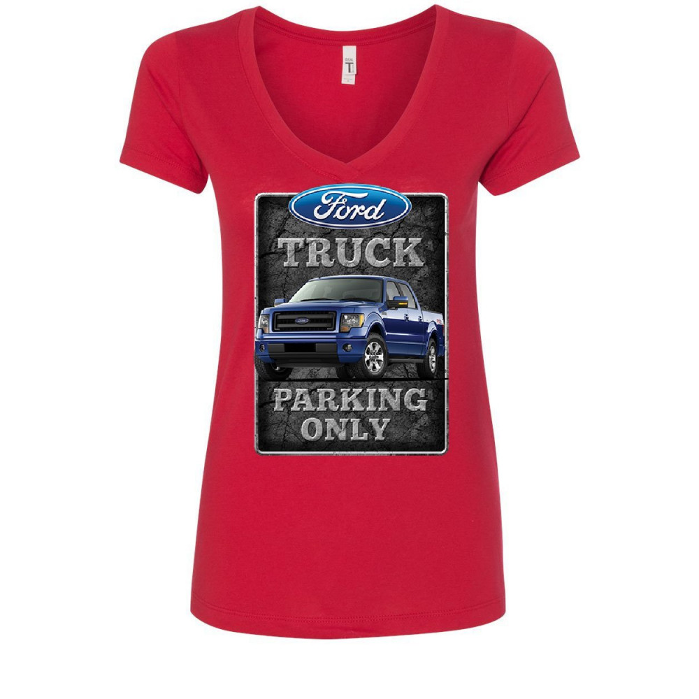 FORD TRUCK PARKING ONLY women's v-neck t-shirt pickup truck built ford tough red