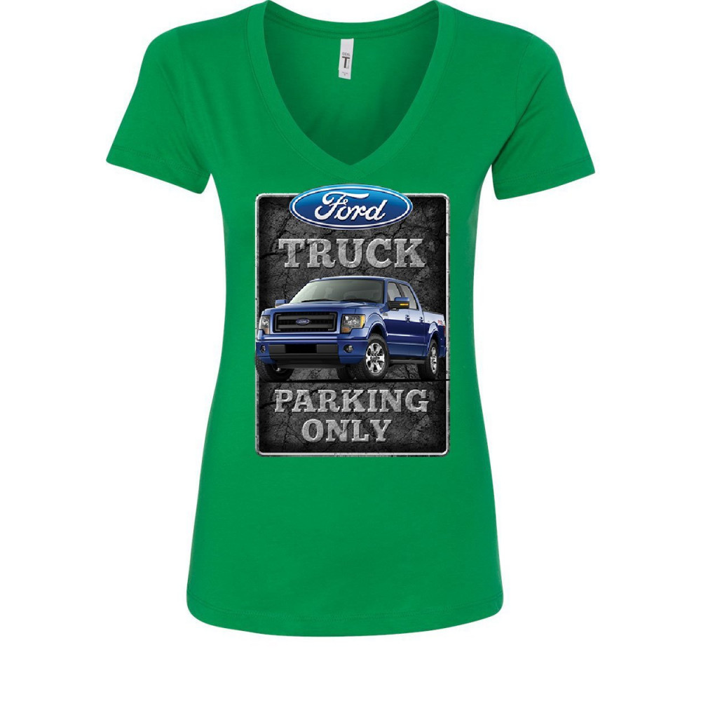 FORD TRUCK PARKING ONLY women's v-neck t-shirt pickup truck built ford tough green