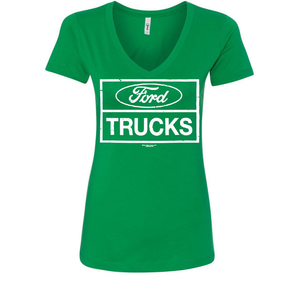 DISTRESSED FORD TRUCKS women's v-neck t-shirt f150 american pick up green