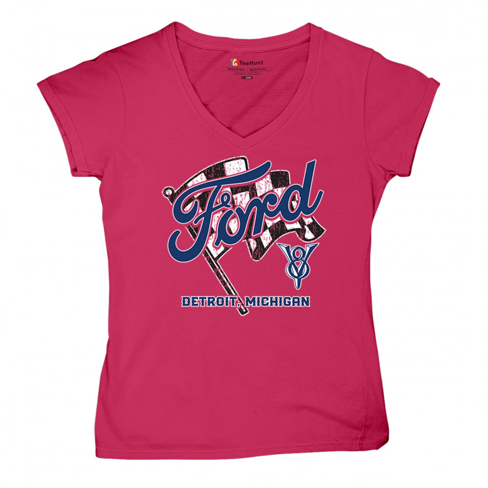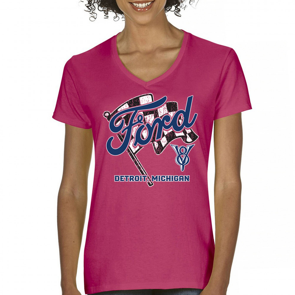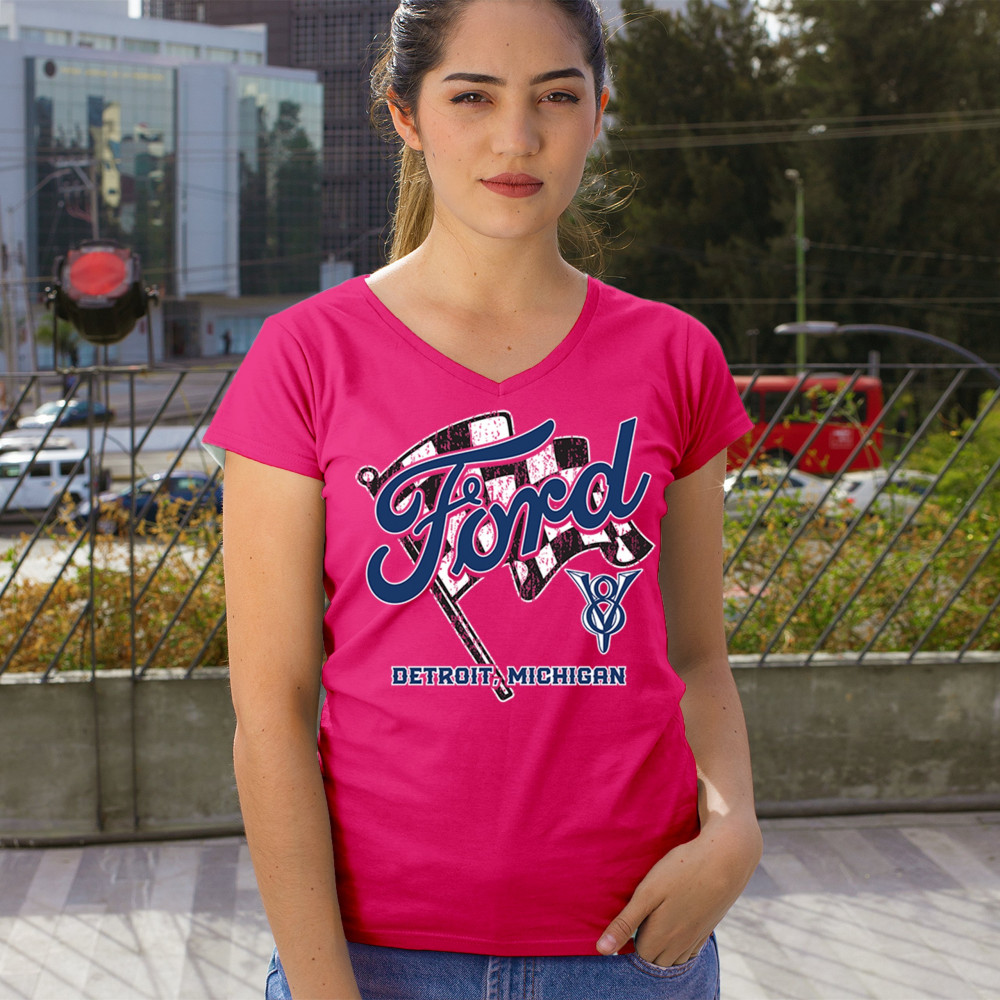 Honor Detroit, Michigan’s Ford legacy with this officially licensed design featuring a checkered flag and bold V8 emblem, perfect for muscle car fans and classic car lovers.