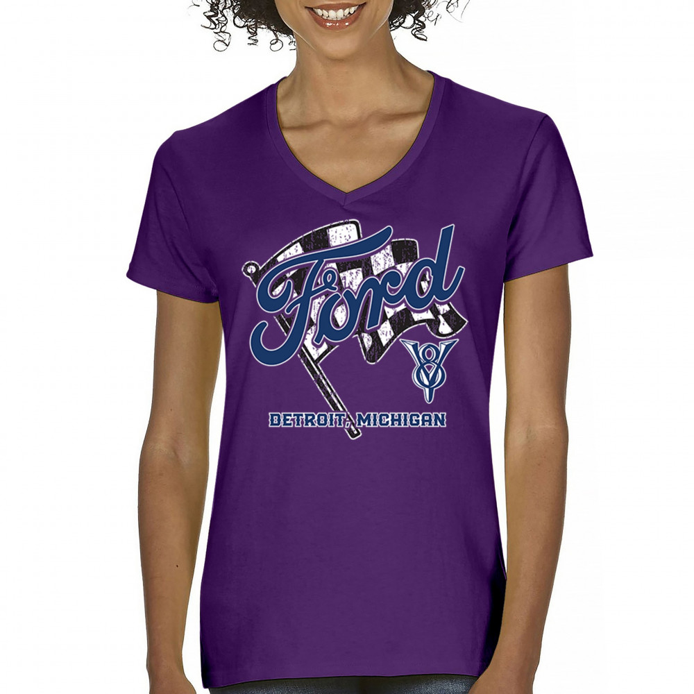 Honor Detroit, Michigan’s Ford legacy with this officially licensed design featuring a checkered flag and bold V8 emblem, perfect for muscle car fans and classic car lovers.
