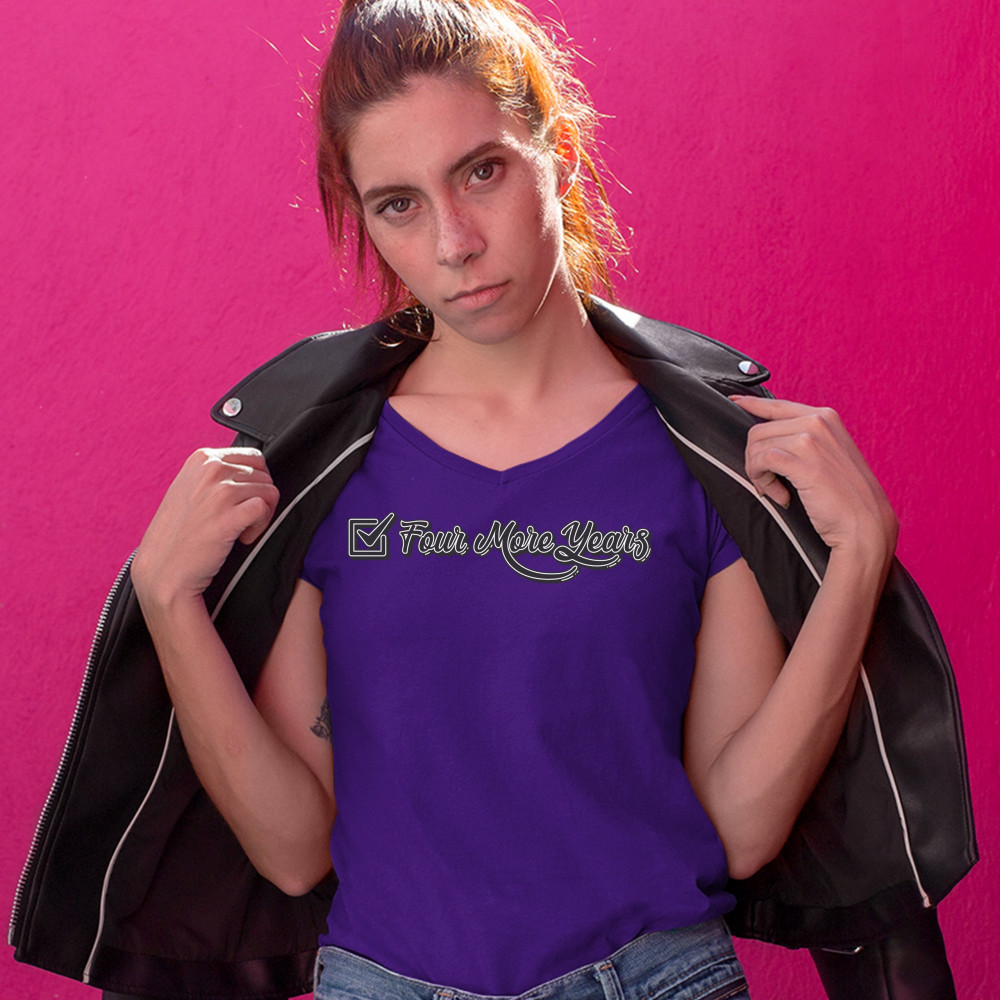 FOUR MORE YEARS women's v-neck t-shirt donald trump for president 2020 tee purple
