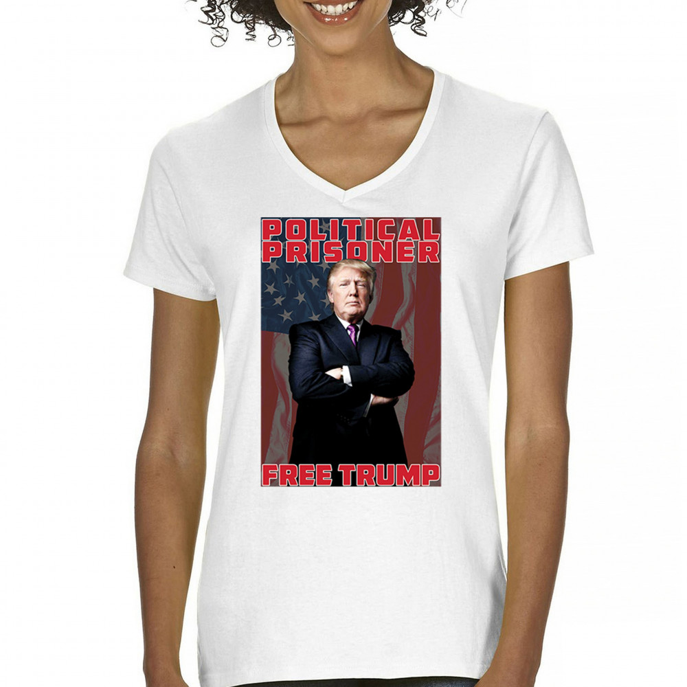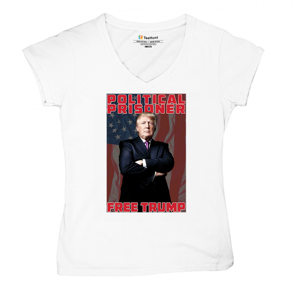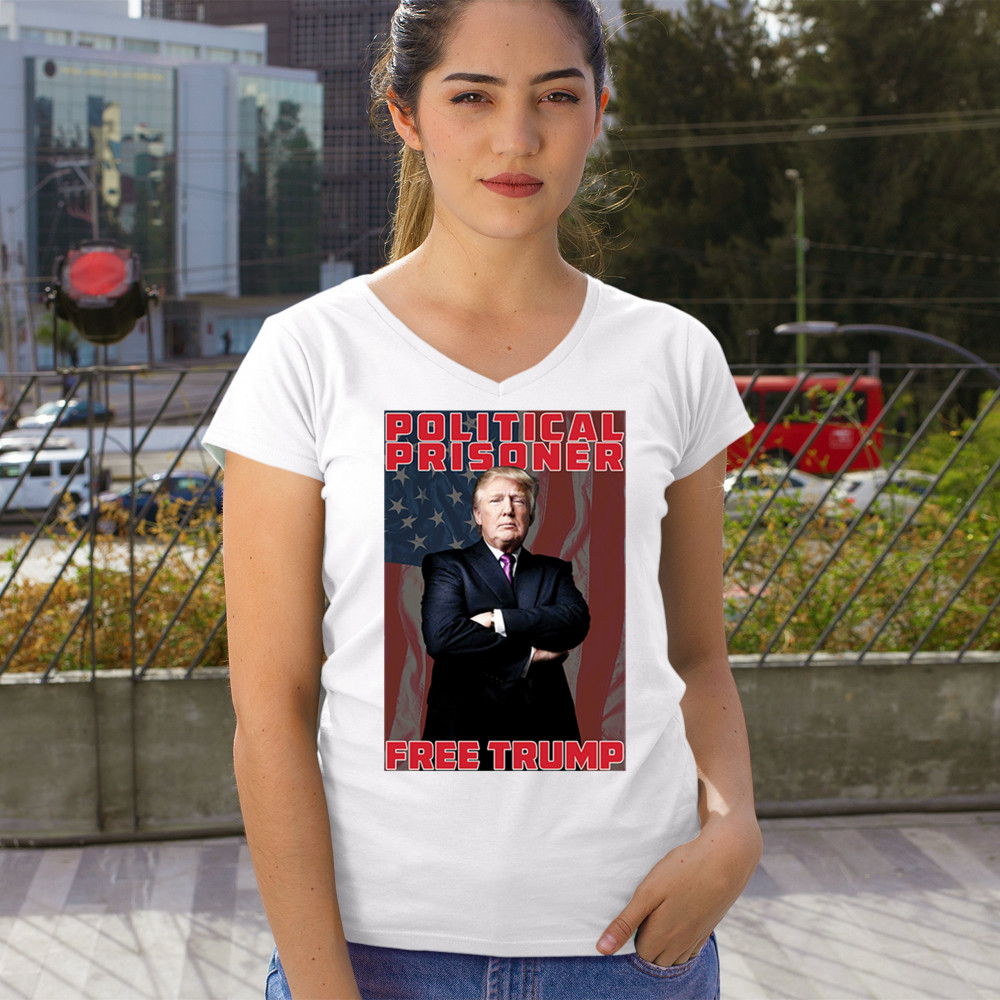 Show your support with the "Political Prisoner Free Trump" design, featuring Trump against an American flag. Perfect for conservative patriots and Trump supporters.