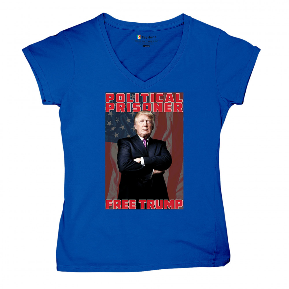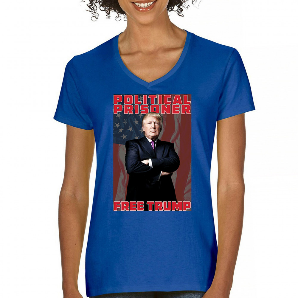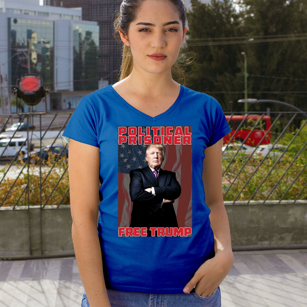Show your support with the "Political Prisoner Free Trump" design, featuring Trump against an American flag. Perfect for conservative patriots and Trump supporters.