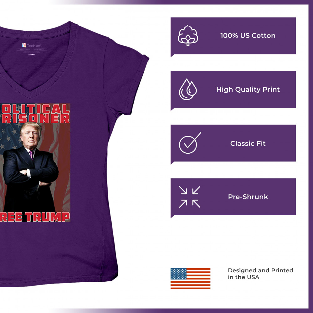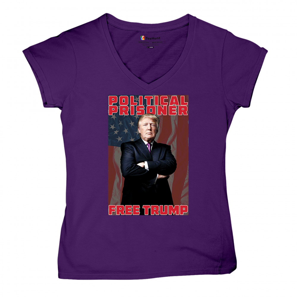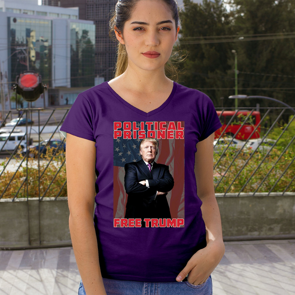 Show your support with the "Political Prisoner Free Trump" design, featuring Trump against an American flag. Perfect for conservative patriots and Trump supporters.
