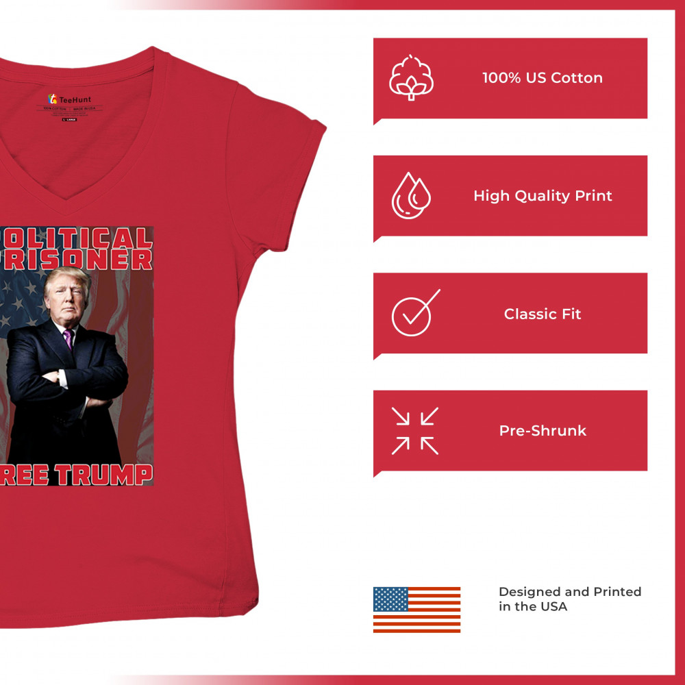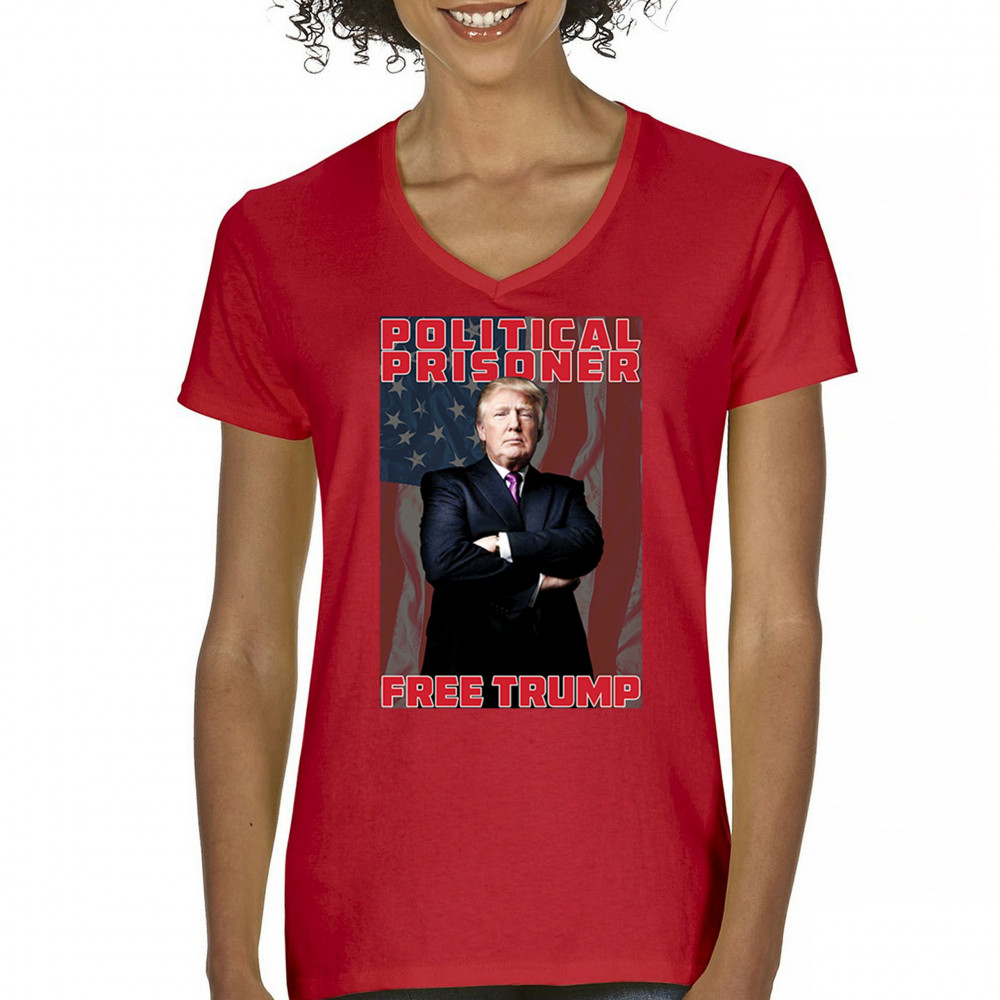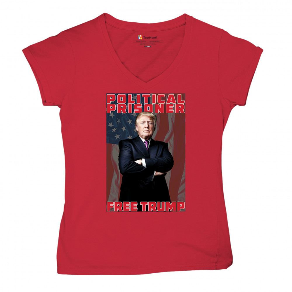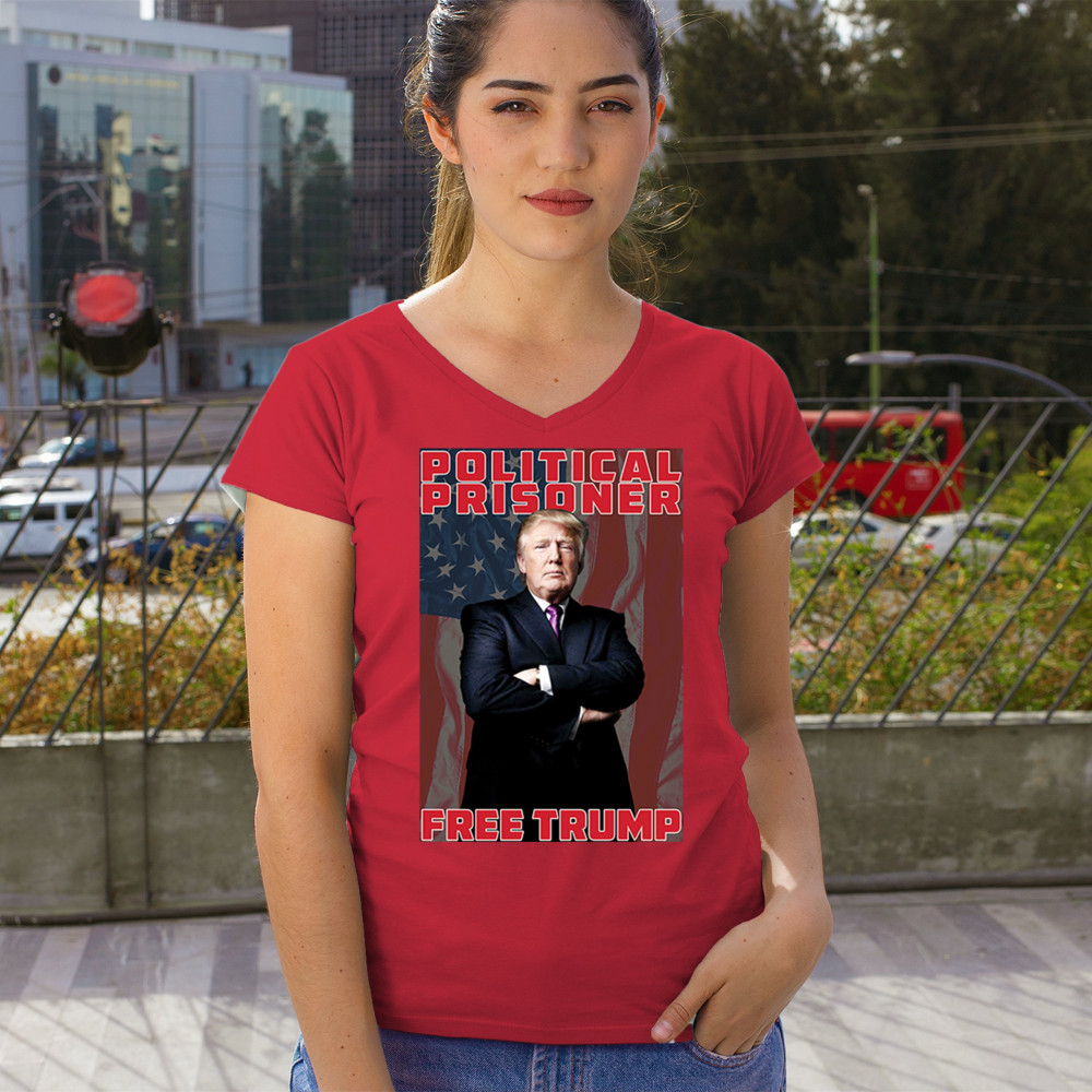 Show your support with the "Political Prisoner Free Trump" design, featuring Trump against an American flag. Perfect for conservative patriots and Trump supporters.