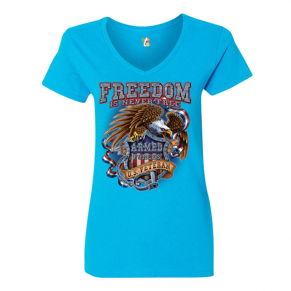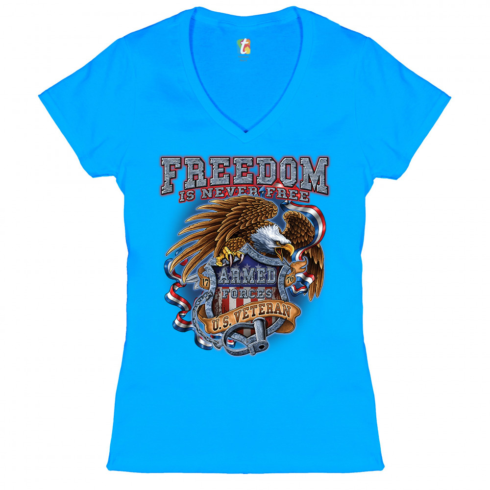 FREEDOM IS NEVER FREE women's v-neck t-shirt u.s. veteran armed forces tee turquoise