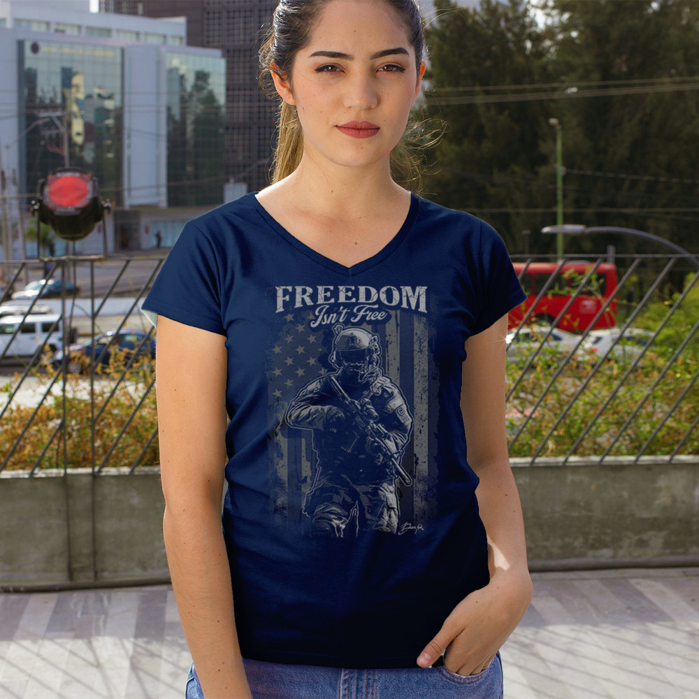This bold design honors the brave who defend our freedom. Featuring a detailed graphic of an armed soldier against a distressed American flag, it’s perfect for military families, veterans, and patriots alike. Whether you’re wearing it for Memorial Day, Independence Day, or just to show pride, it reflects sacrifice, duty, and American strength.