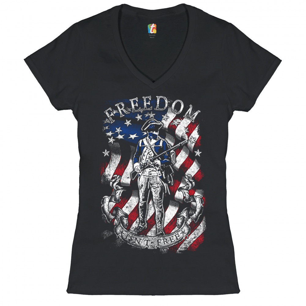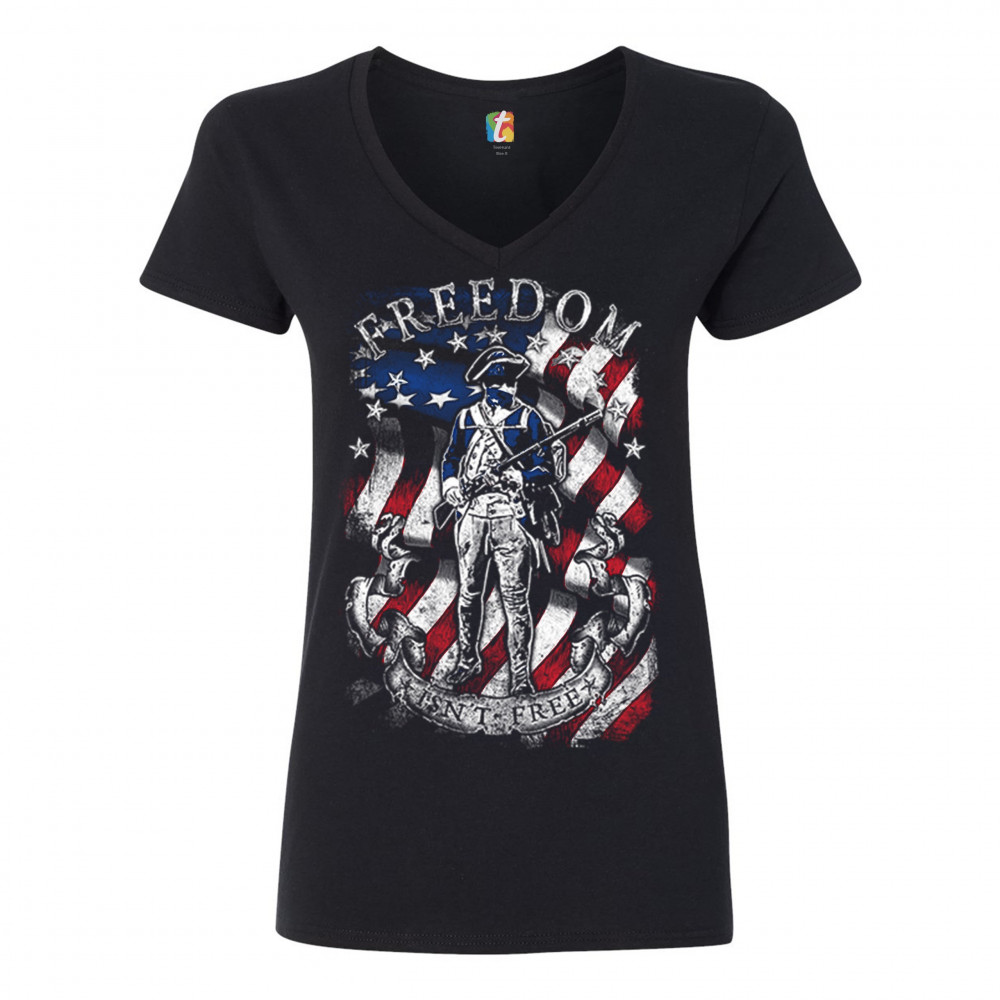 FREEDOM ISN'T FREE women's v-neck t-shirt independence american flag tee black