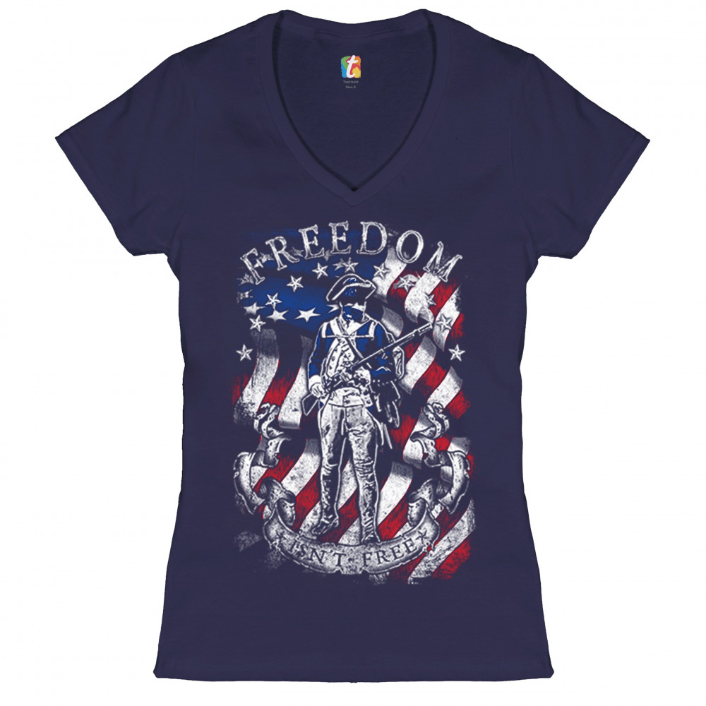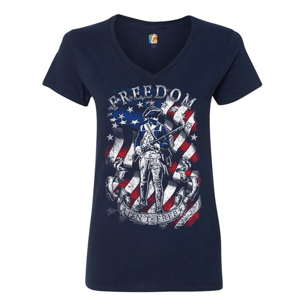 FREEDOM ISN'T FREE women's v-neck t-shirt independence american flag tee navy blue