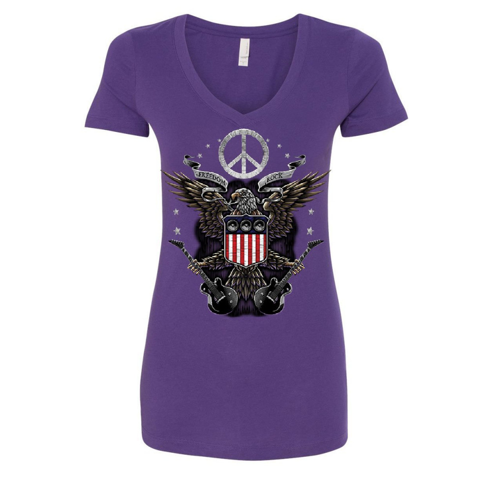 FREEDOM ROCK women's v-neck t-shirt peace american flag bald eagle 4th of july purple