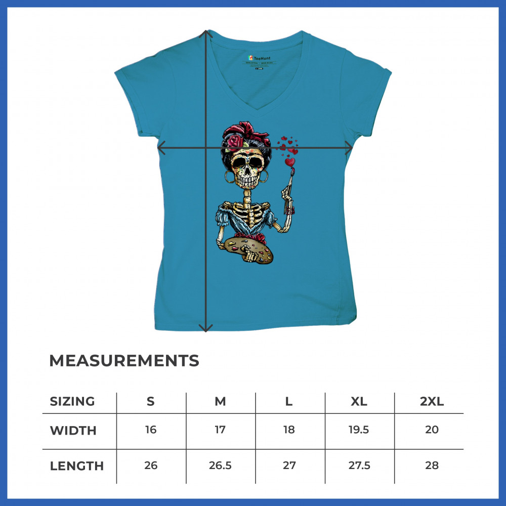 FRIDA KAHLO SUGAR SKULL women's v-neck t-shirt calavera day of the dead tee turquoise