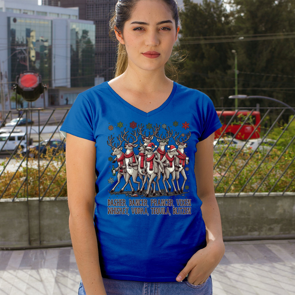 Funny drinking-reindeer Christmas design perfect for parties, bar crawls, and festive adult humor. Great for holiday laughs and spirited winter fun.