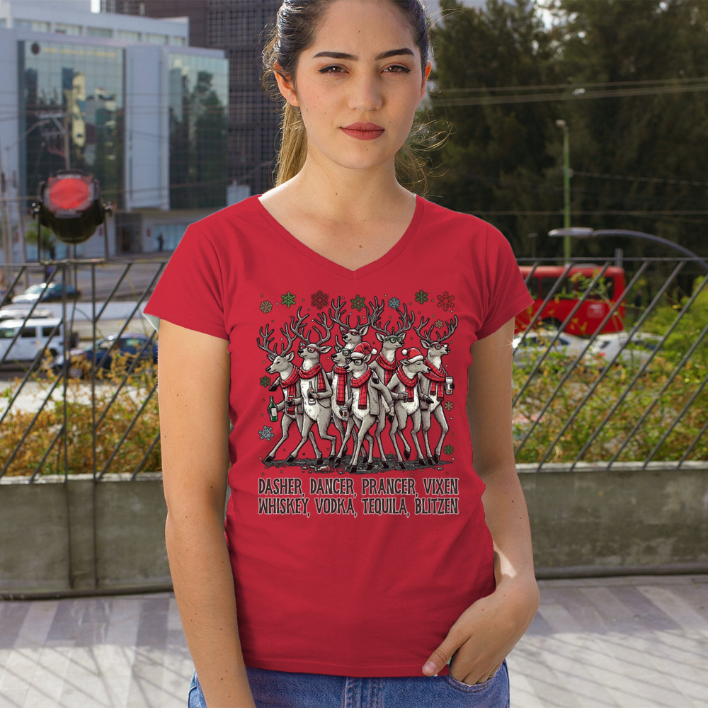 Funny drinking-reindeer Christmas design perfect for parties, bar crawls, and festive adult humor. Great for holiday laughs and spirited winter fun.