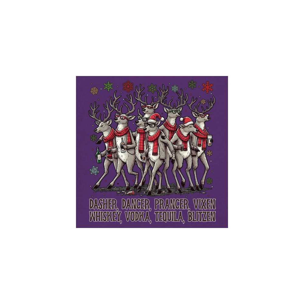 This funny holiday design features a squad of drinking reindeer carrying bottles and dressed in scarves for the ultimate Christmas party vibe. Great for bar crawls, office parties, winter gatherings, adult holiday events, white elephant exchanges, festive nights out, and anyone who loves spirited Christmas humor with a cheeky personality.
