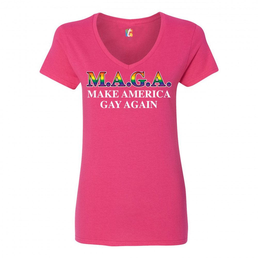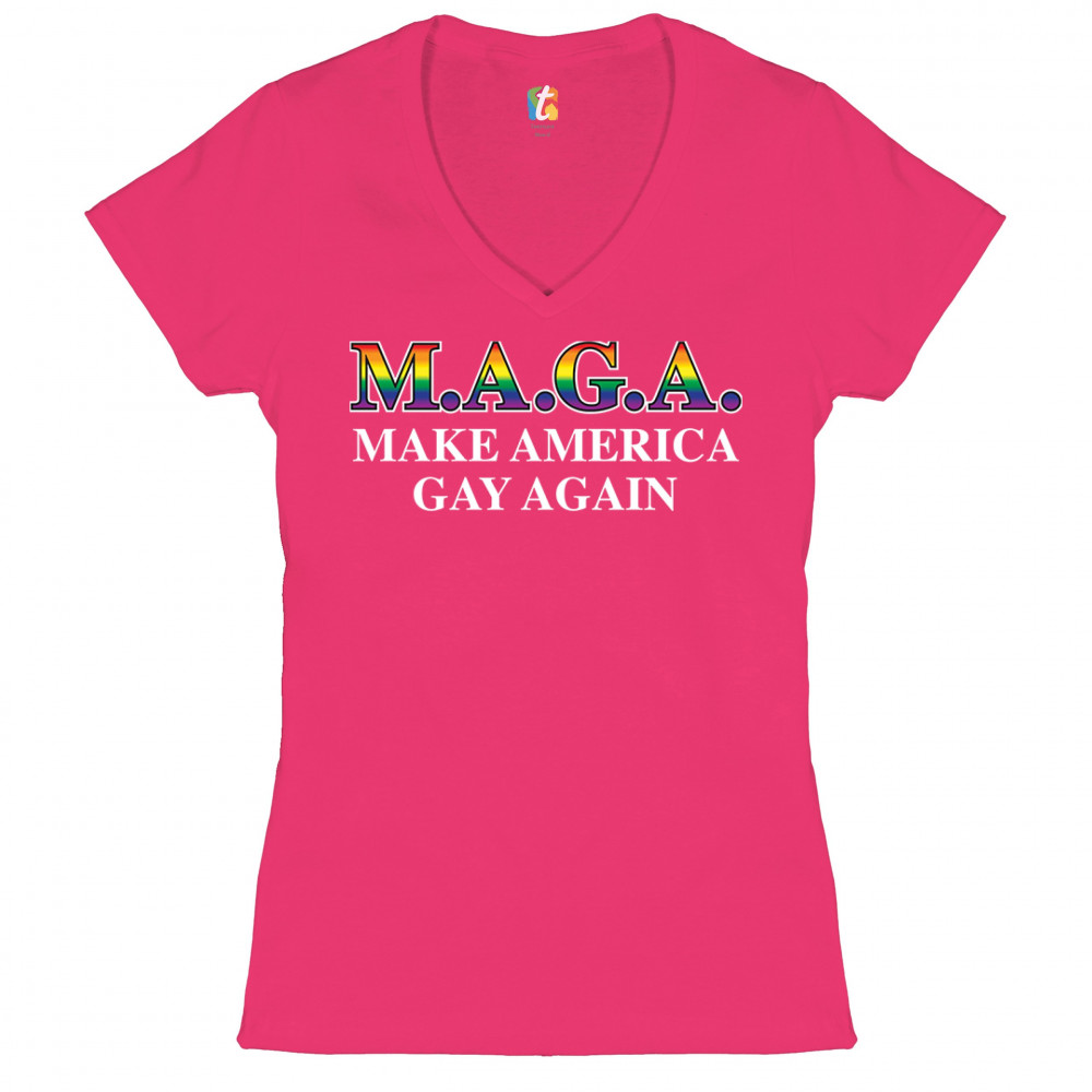 FUNNY MAGA ANTI TRUMP women's v-neck t-shirt lgbt rainbow pride equality tee pink