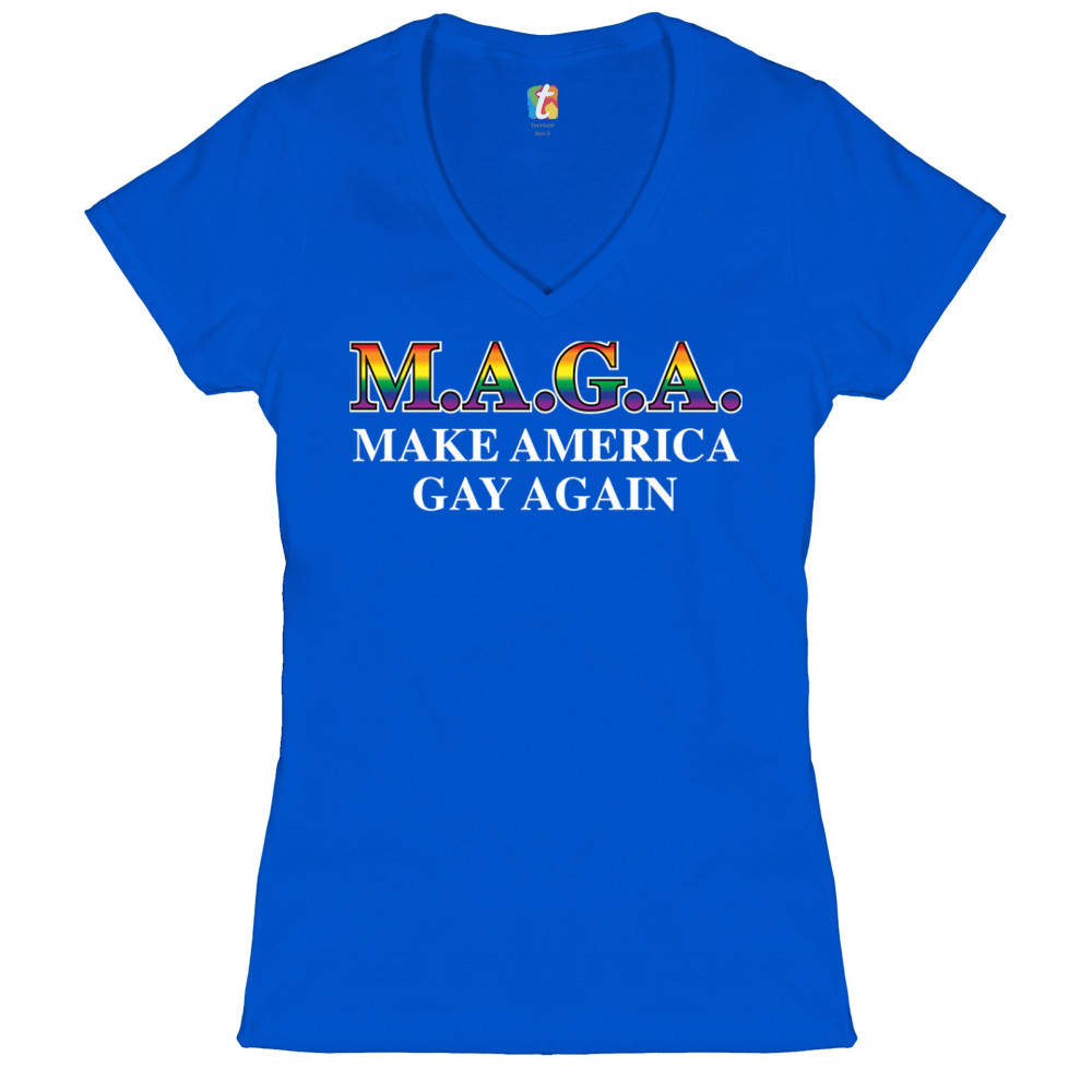 FUNNY MAGA ANTI TRUMP women's v-neck t-shirt lgbt rainbow pride equality tee royal blue