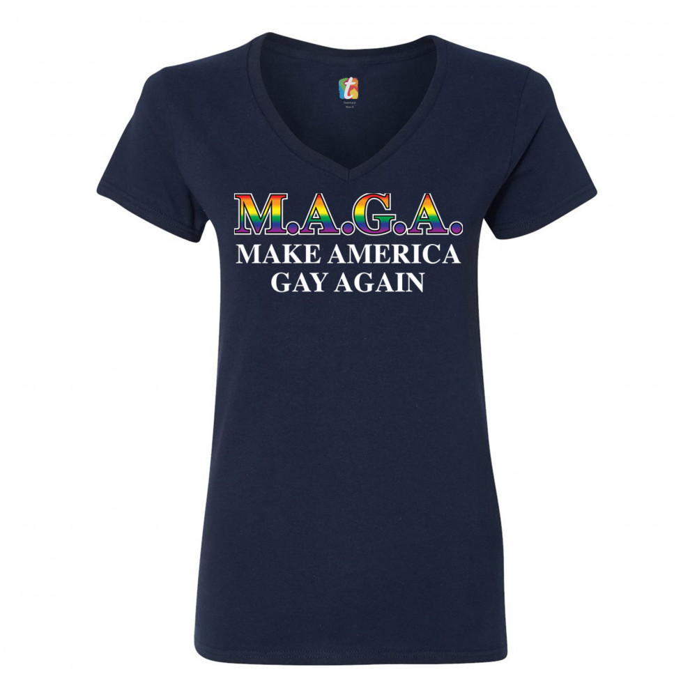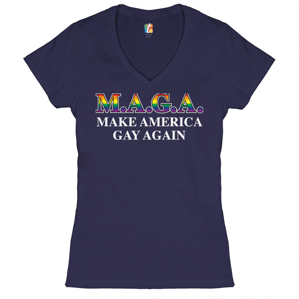 FUNNY MAGA ANTI TRUMP women's v-neck t-shirt lgbt rainbow pride equality tee navy blue