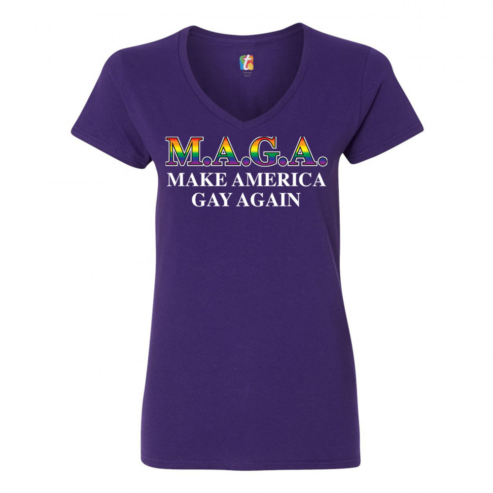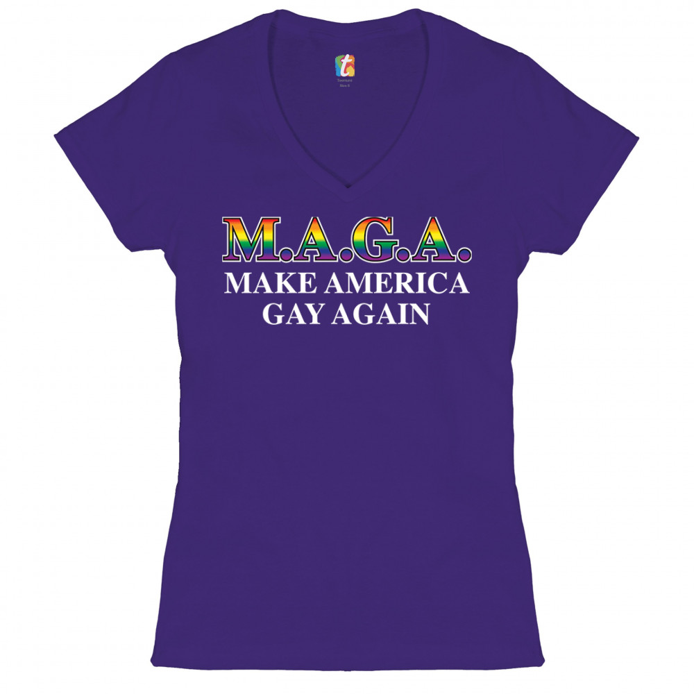 FUNNY MAGA ANTI TRUMP women's v-neck t-shirt lgbt rainbow pride equality tee purple