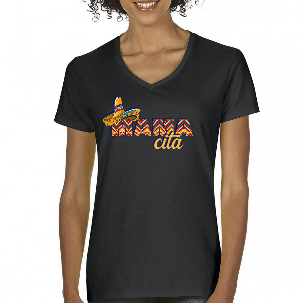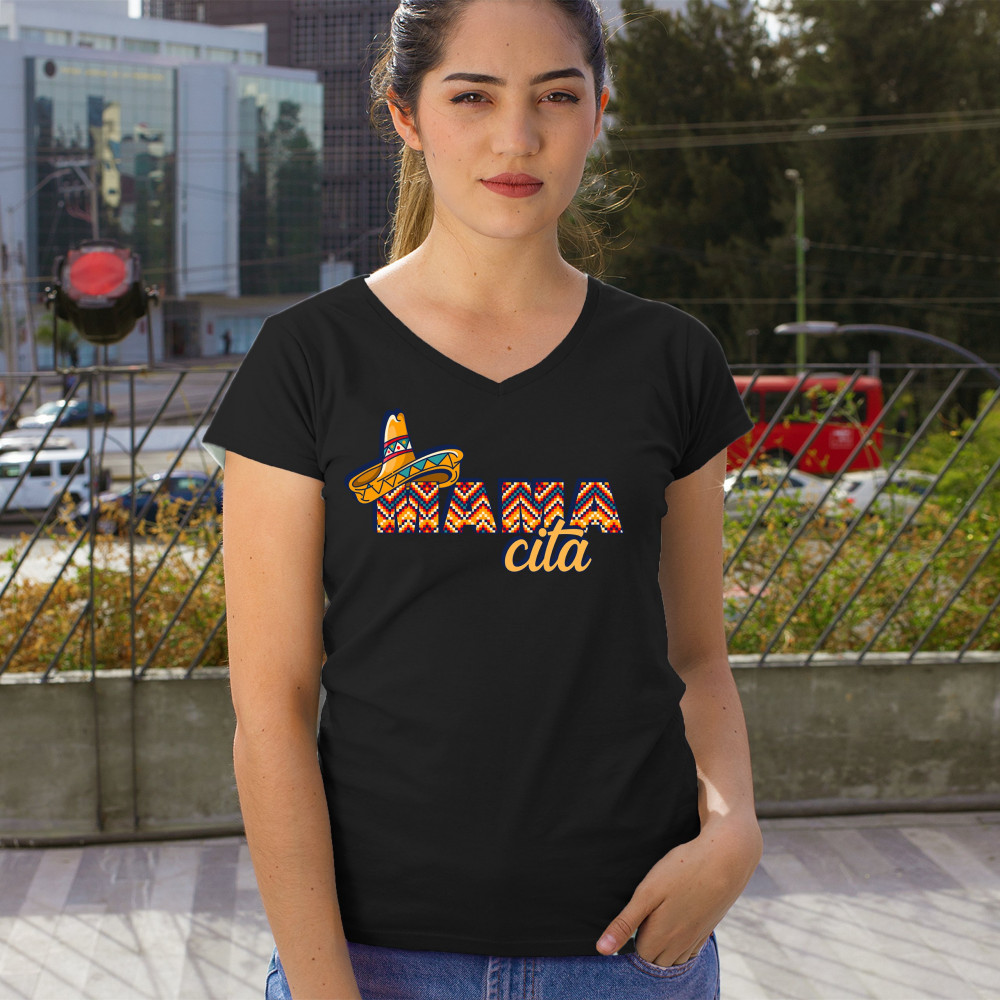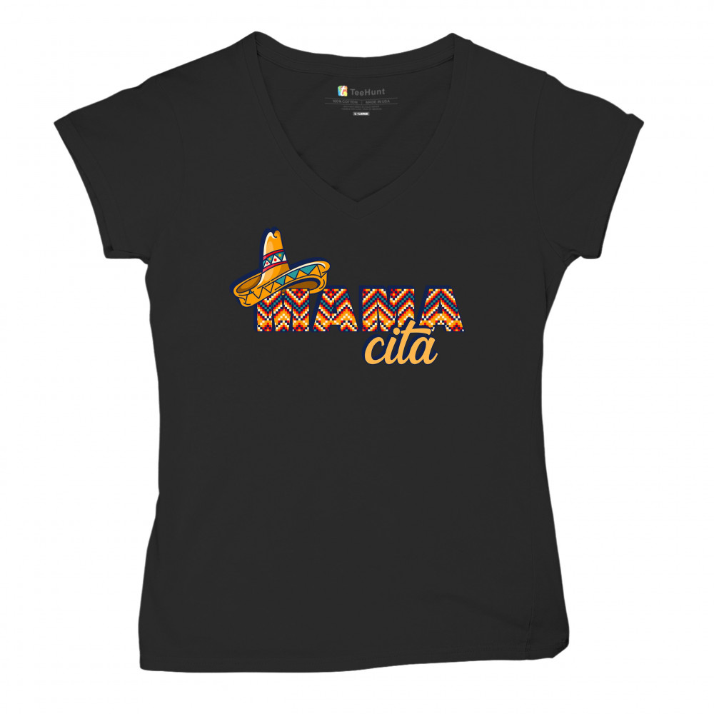 FUNNY MAMACITA CINCO DE MAYO women's v-neck t-shirt mexican sombrero may 5 tee black
