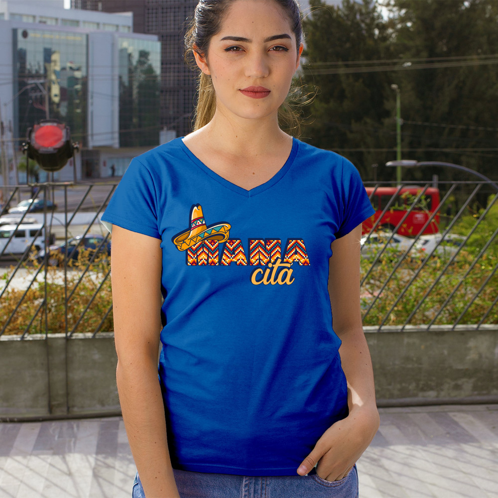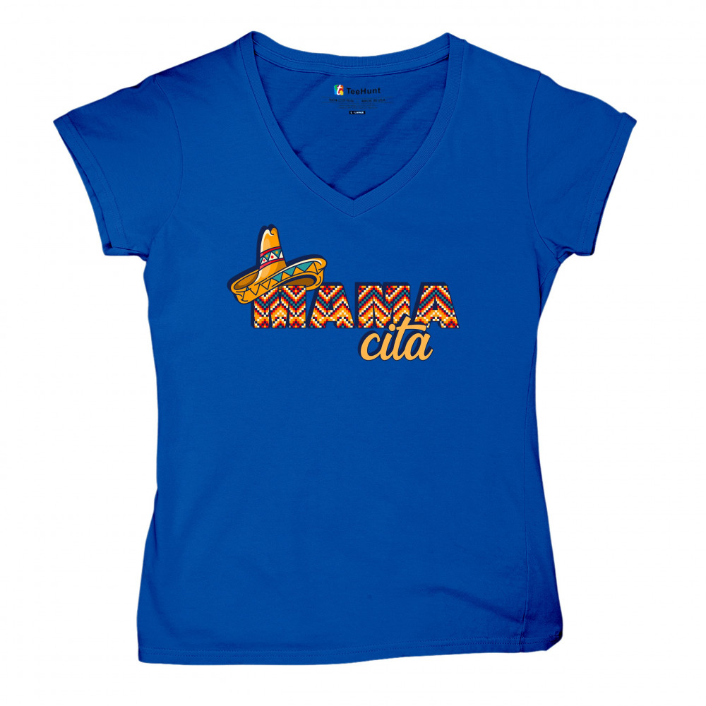 FUNNY MAMACITA CINCO DE MAYO women's v-neck t-shirt mexican sombrero may 5 tee royal blue